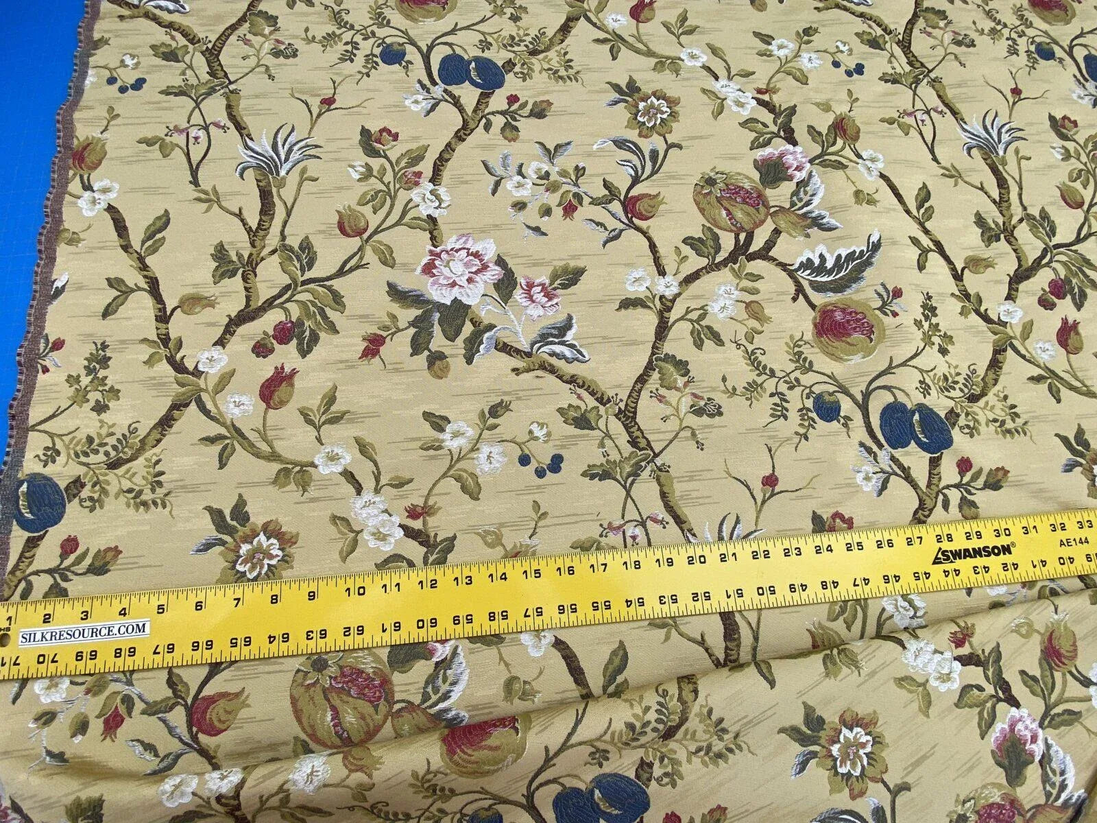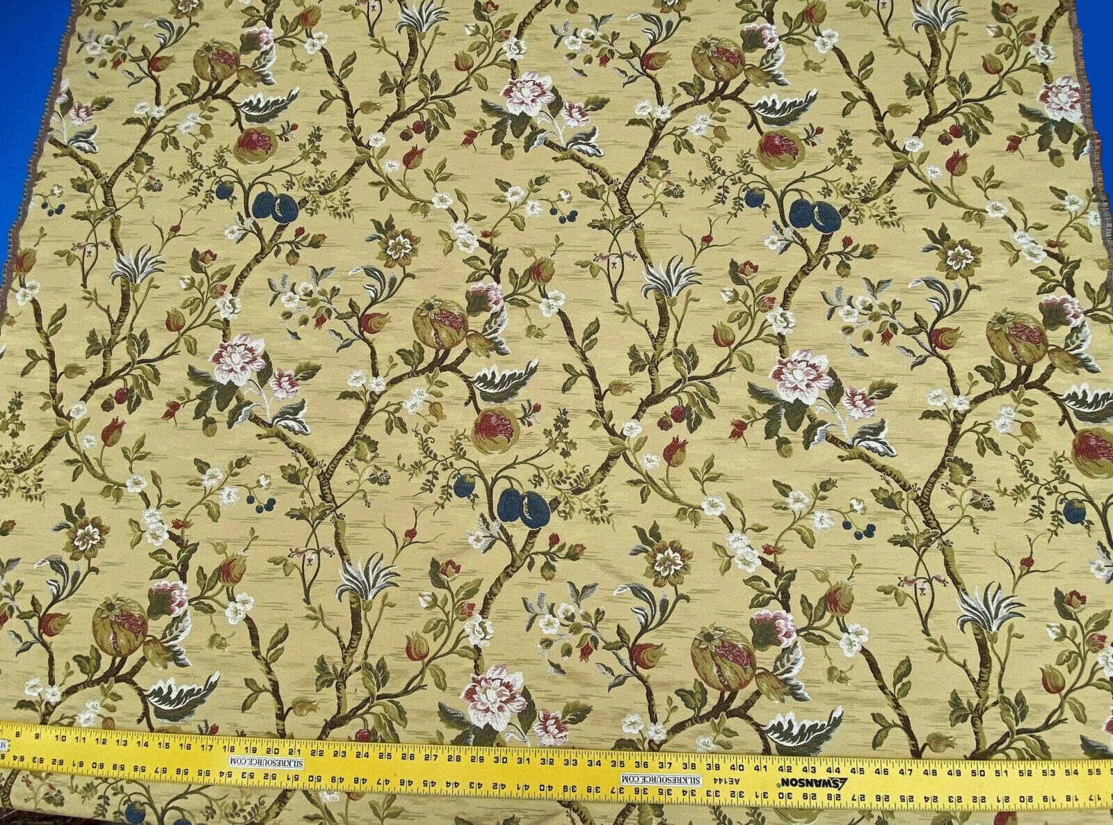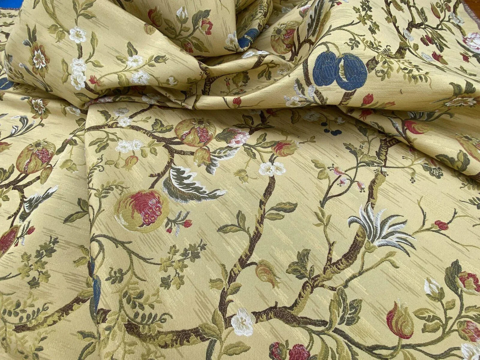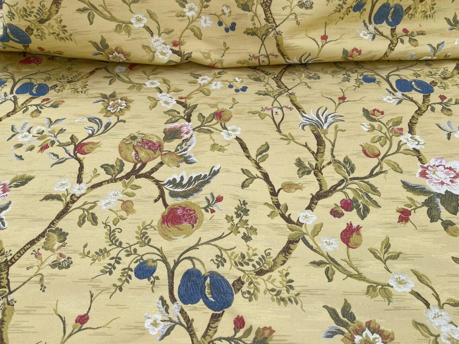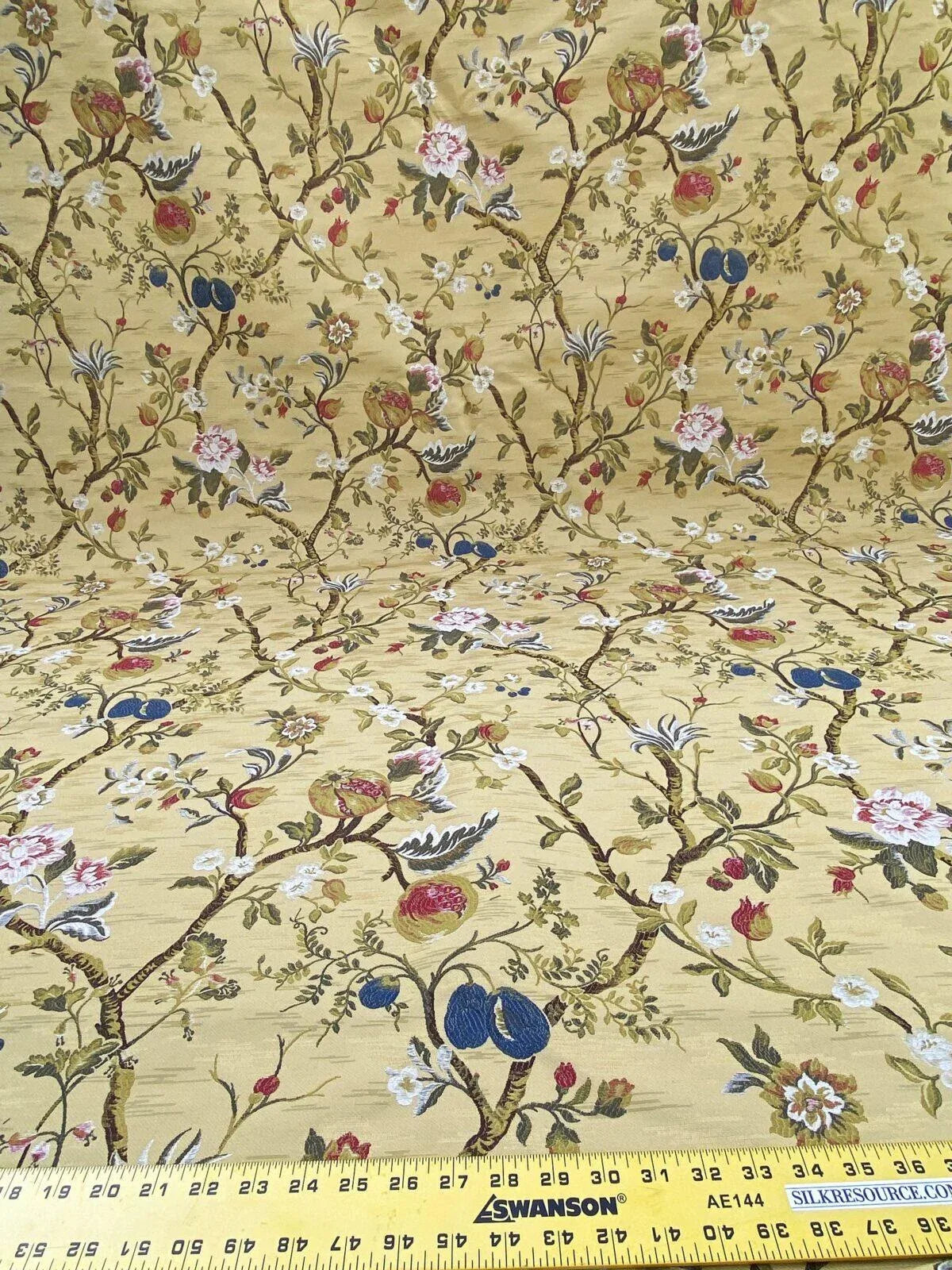 Renaissance Lampas Melograno Pom Fig Rose Tree Of Life On Yellow Gold #1633