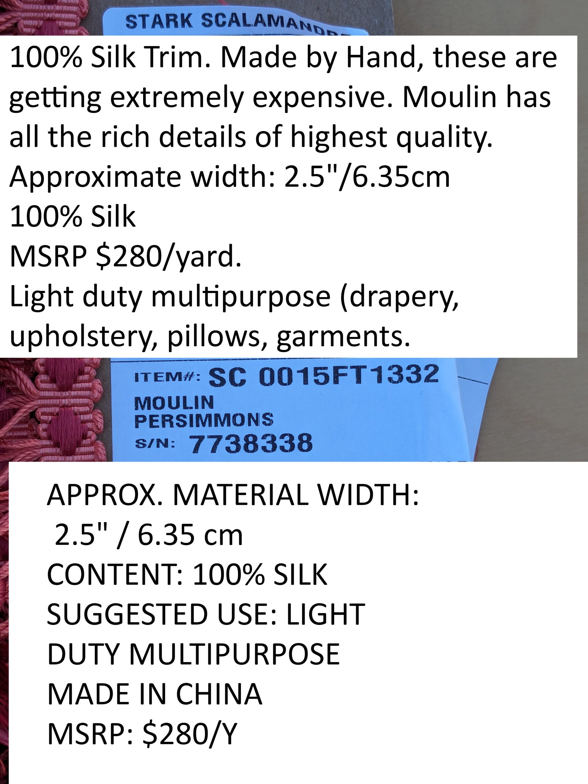 Scalamandre Moulin Persimmons 100% Silk Tassel Trim Hand Made Red Pink Rose MSRP USD280/y