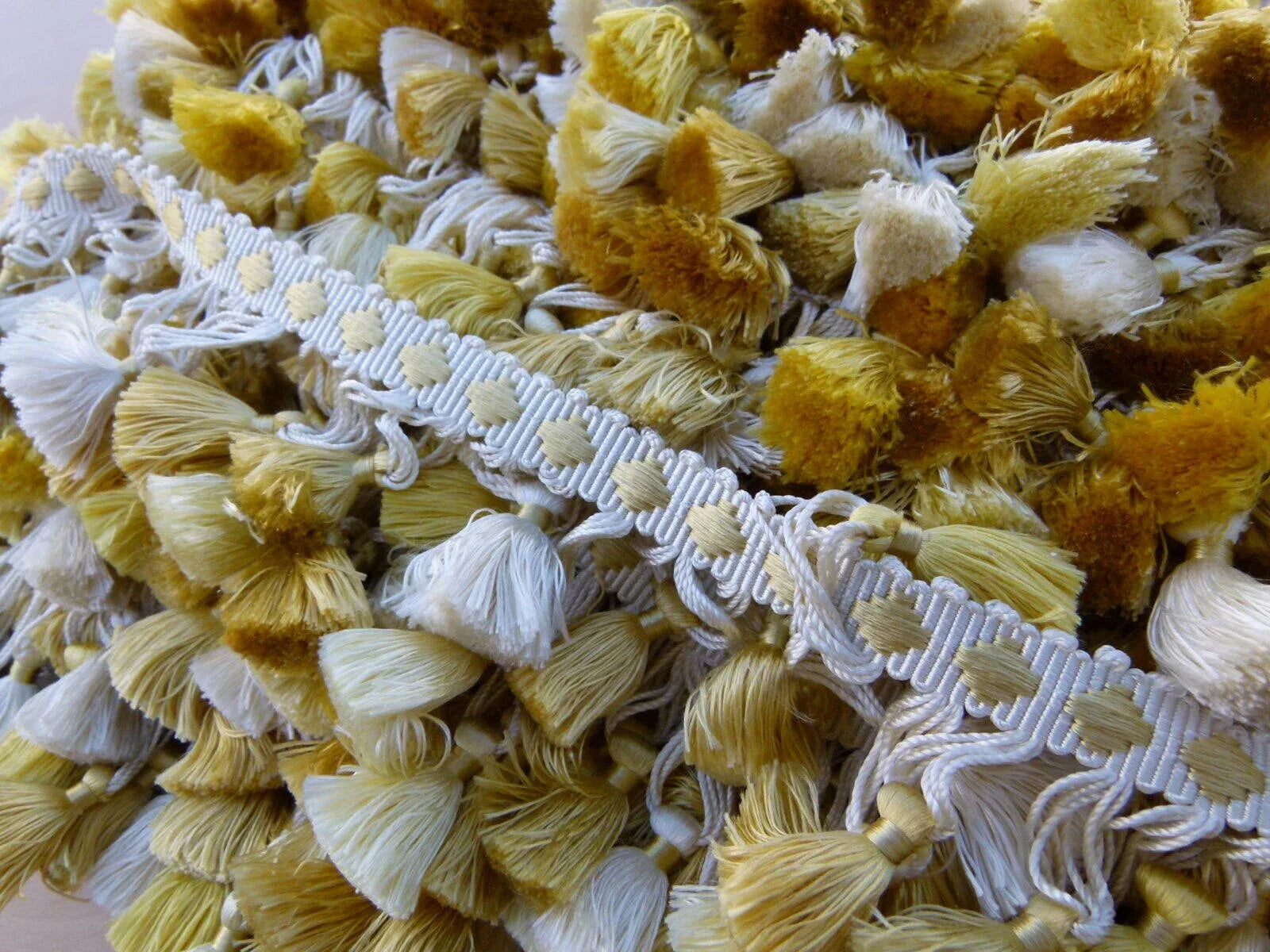 Scalamandre Moulin Yellows 100% Silk Tassel Trim Hand Made Yellow Gold Cream MSRP USD 280/Y