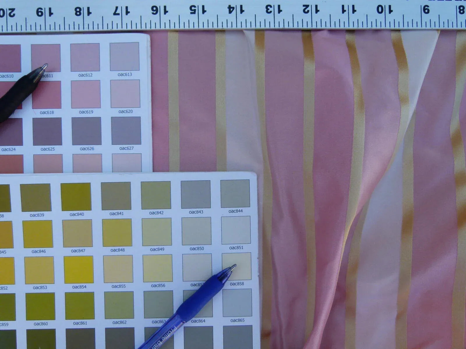 Scalamandre Napoli Stripe Pink Tan Gold 100% Silk Taffeta MSRP USD 350/y