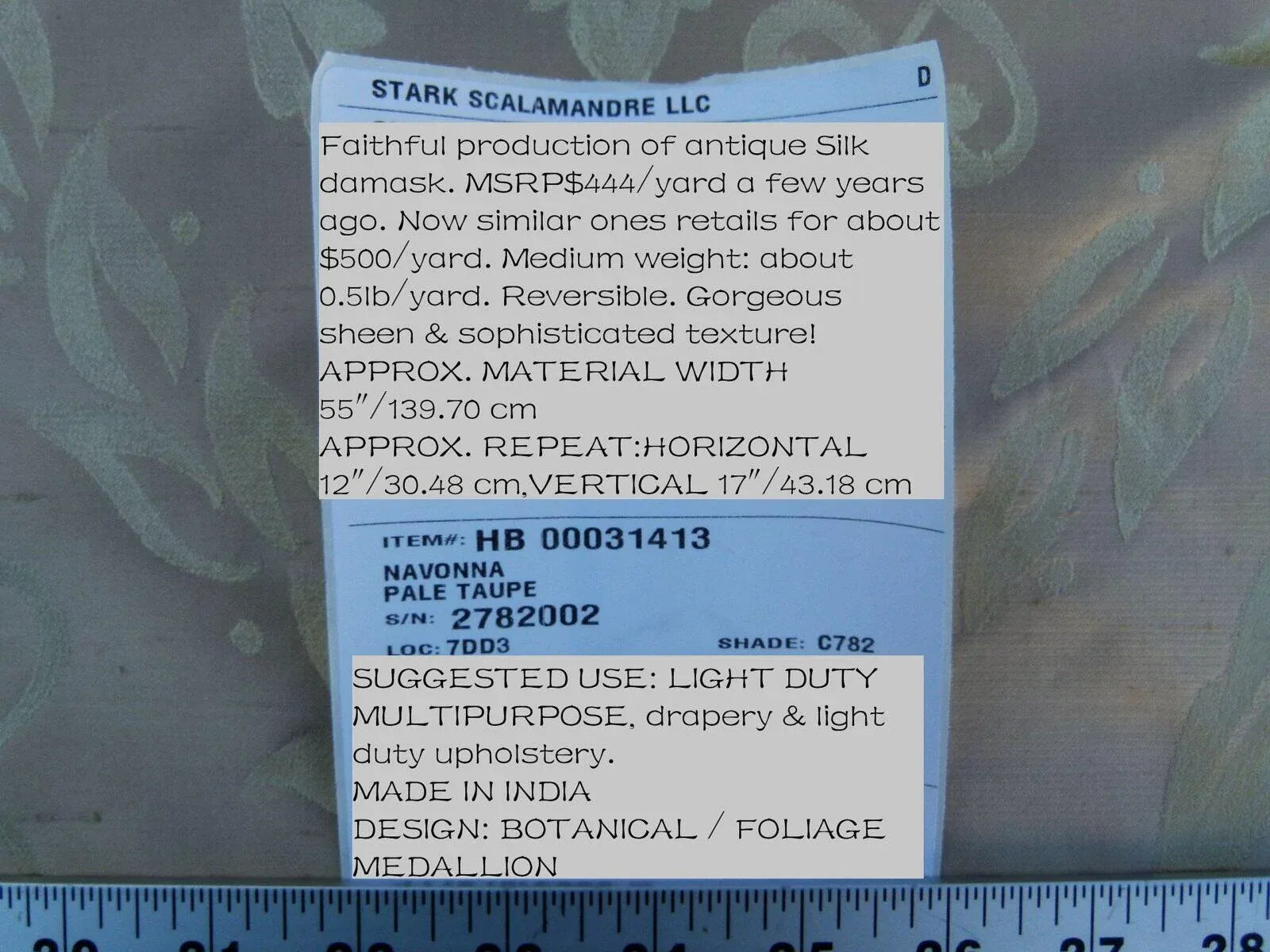 Fiber, repeat, width, weight, country of origin, retail price/yard: Please see text in photos.