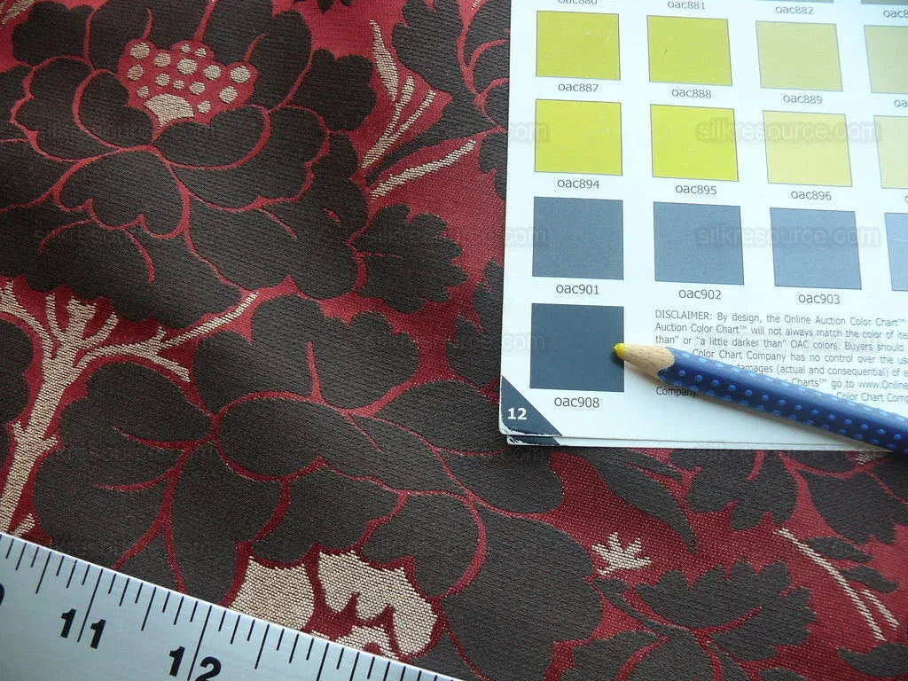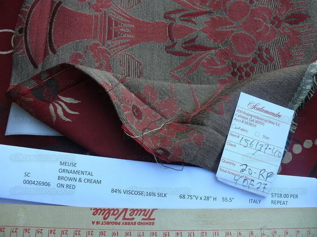 Scalamandre Neoclassical Meuse Ornamental Red Cream Brown Silk Rose Pearl Peacock by VR 1.9Y MSRP USD1436