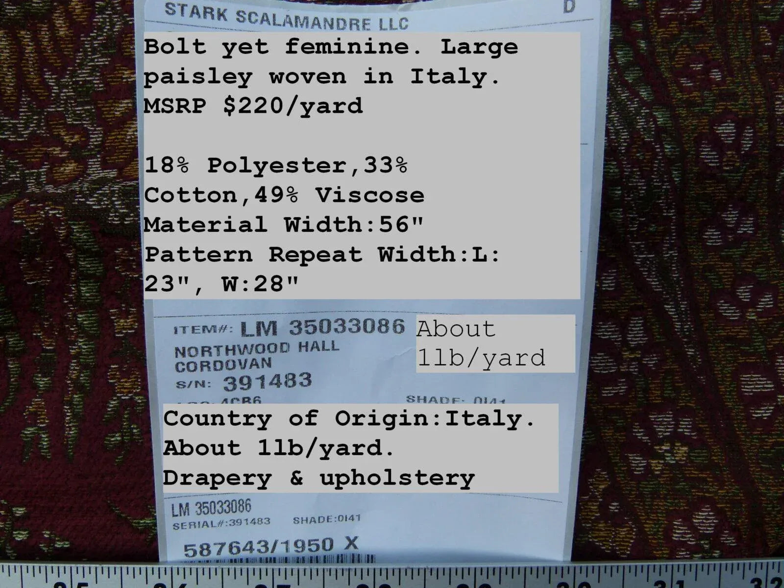 Fiber, repeat, width, weight, country of origin, retail price/yard: Please see text in photos.