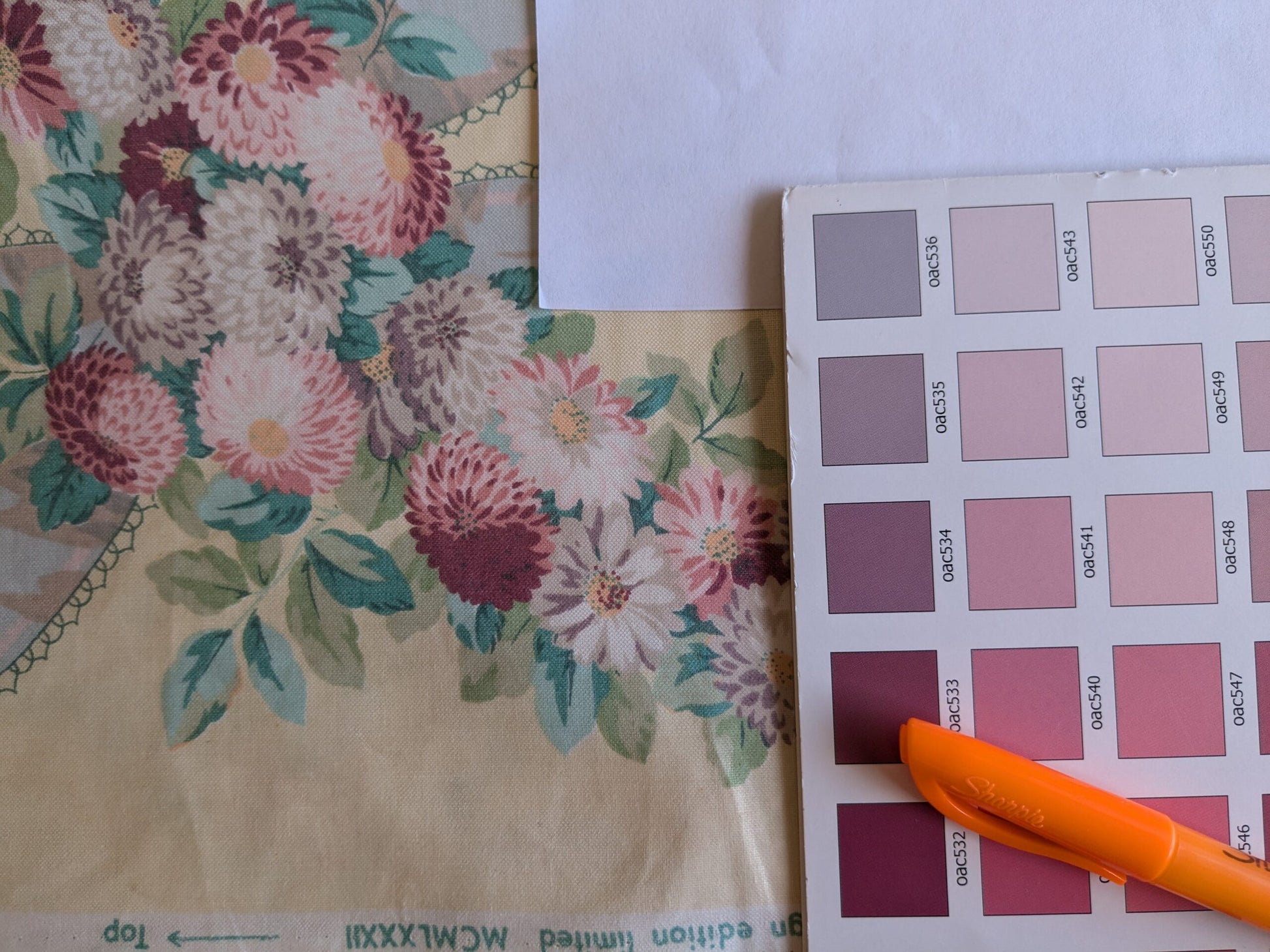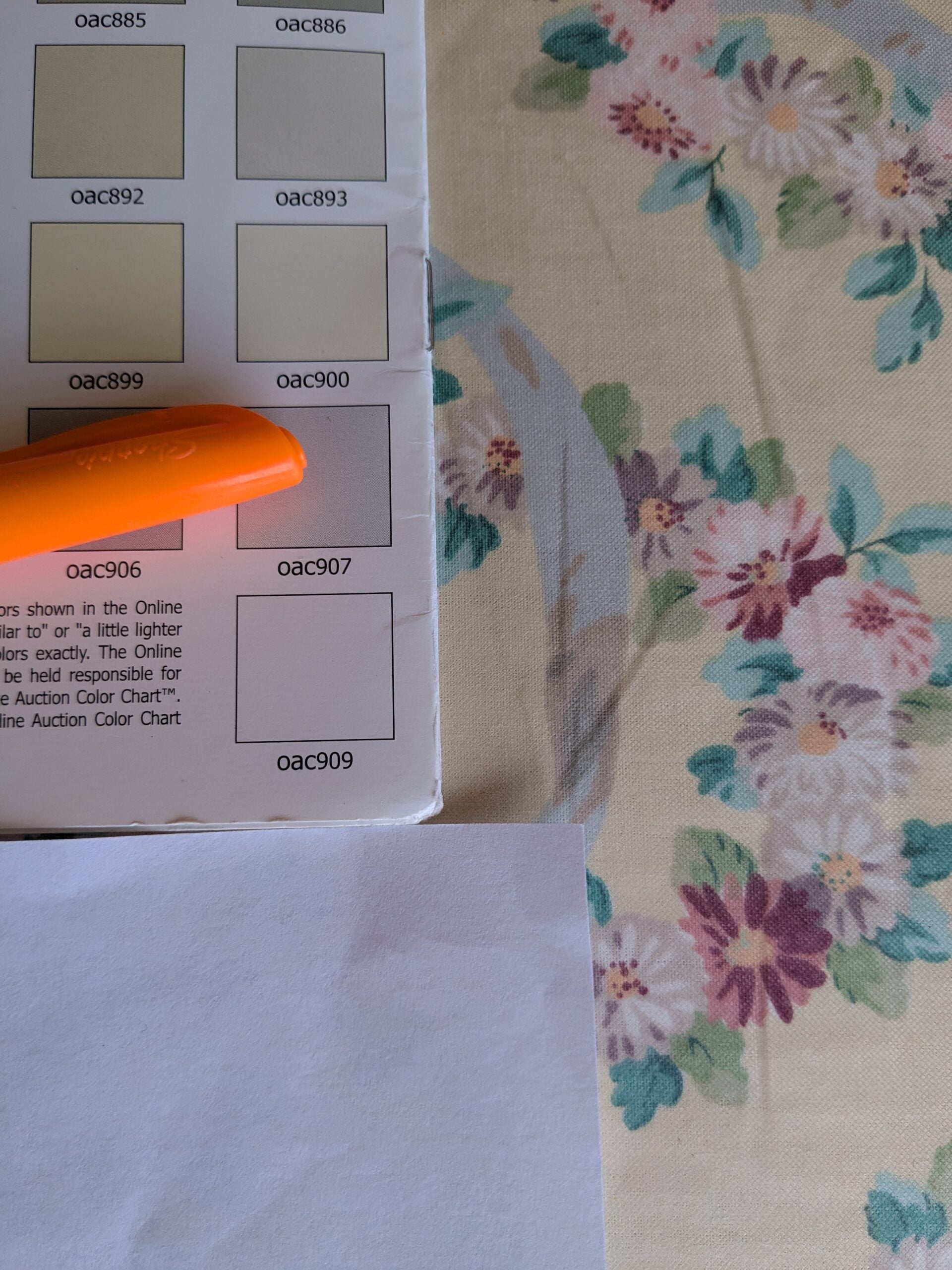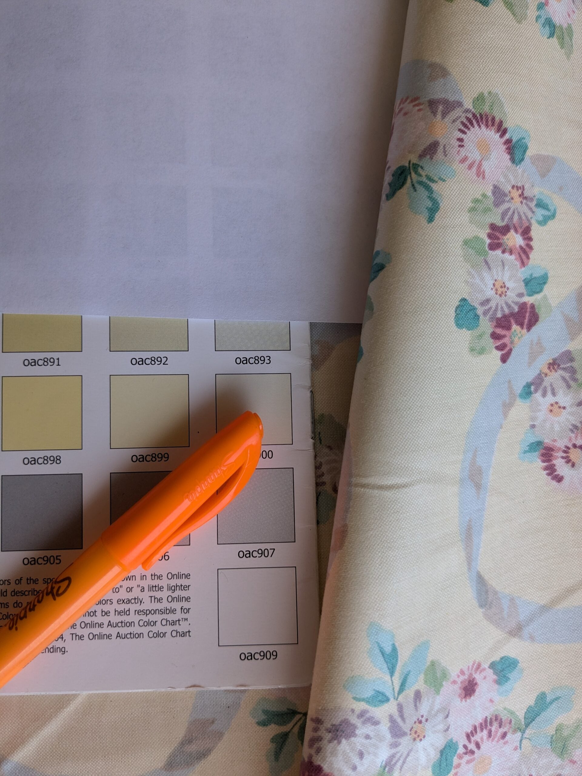Color: Ecru/Salmon. Although Old World Weavers call the background "Ecru", it looks more like a pale butter yellow to us.