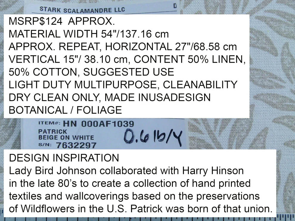 Lady Bird Johnson collaborated with Harry Hinson in the late 80’s to create a collection of hand printed textiles and wallcoverings based on the Preservation of Wildflowers in the U.S. Patrick was born of that union.
