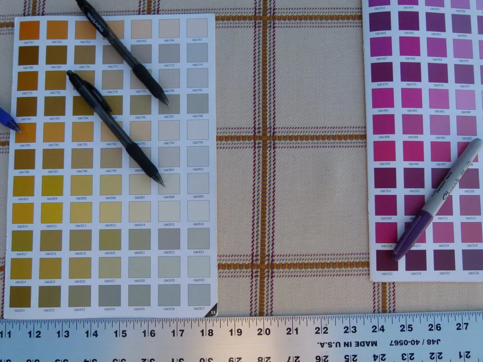 Fiber, repeat, width, weight, country of origin, retail price/yard: Please see text in photos.
