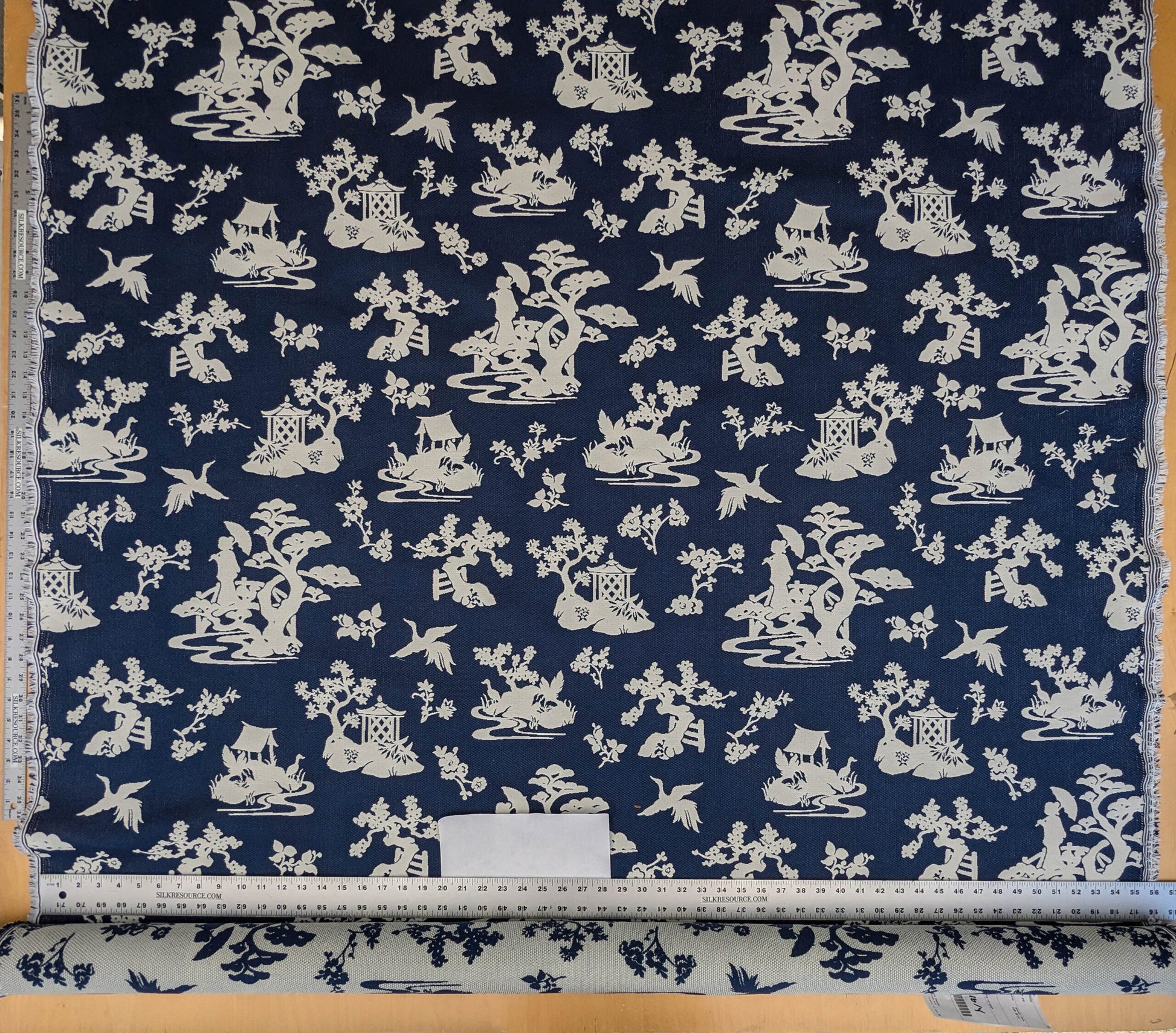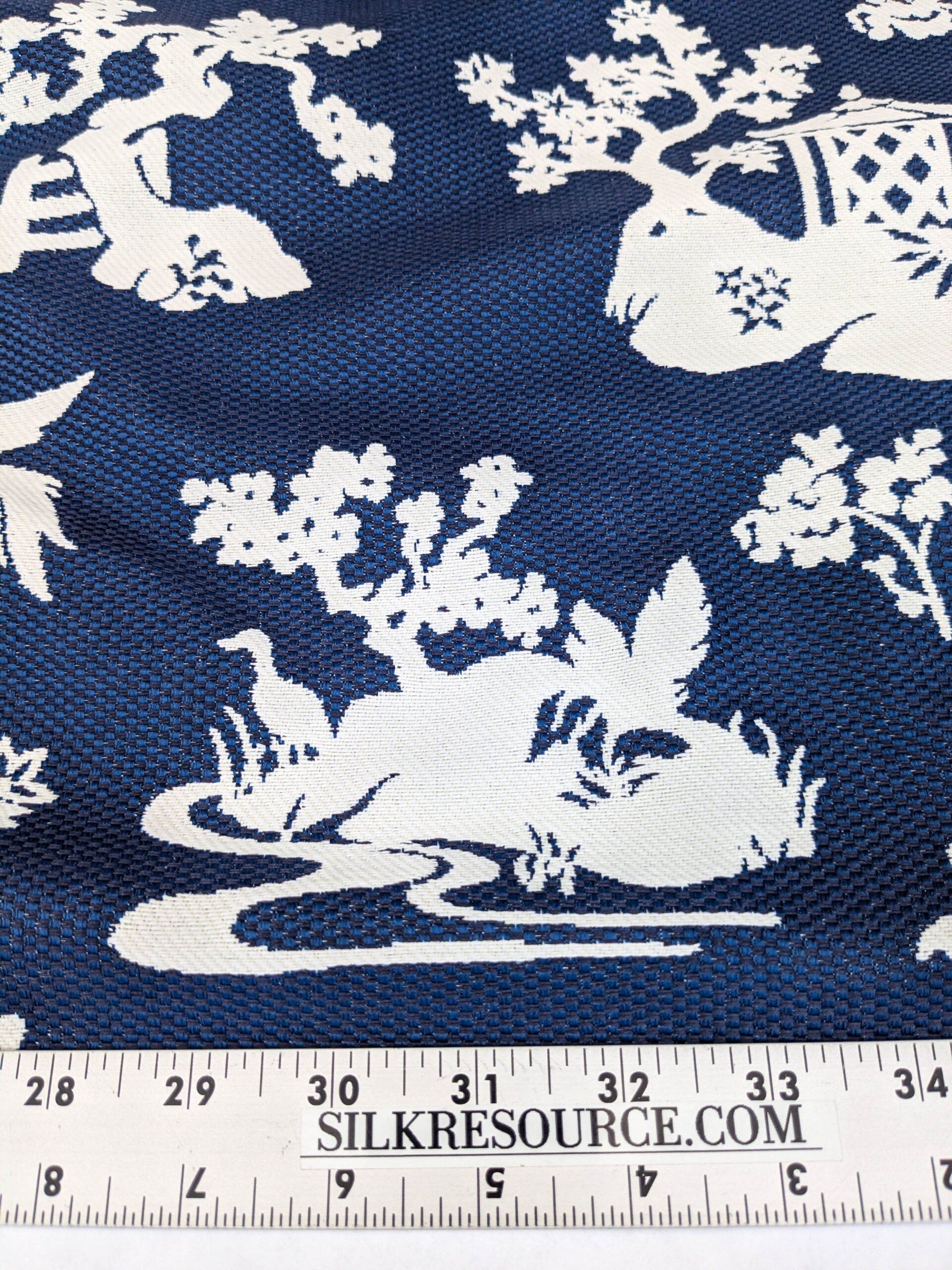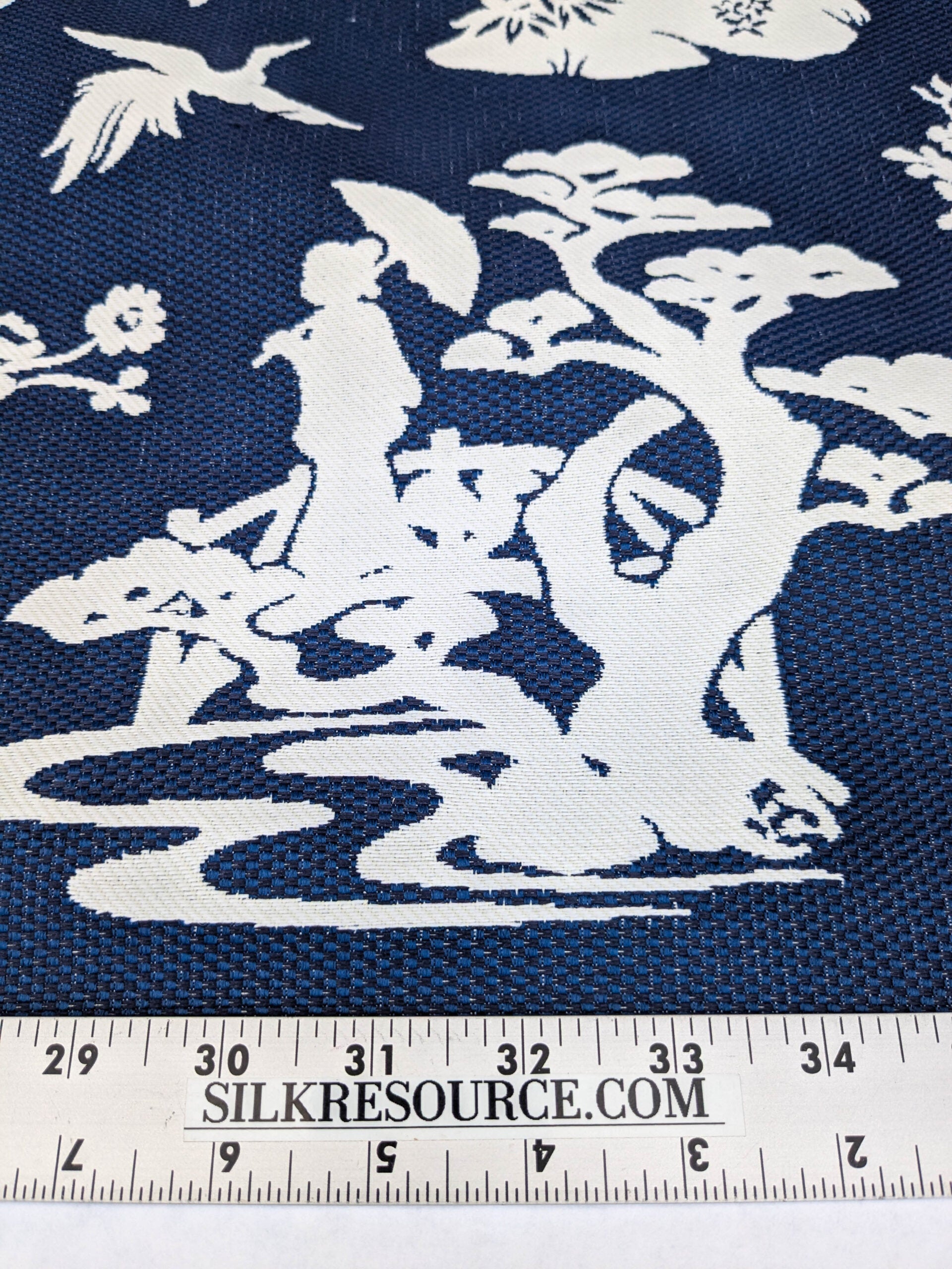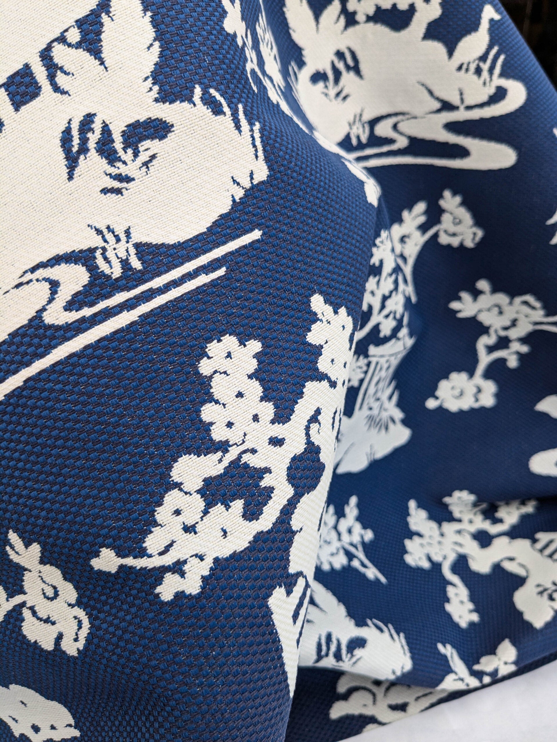 Scalamandre Romantic Outdoor Lily Pond Indigo Blue White Chinoisery Landscape Mountain Jacquard Reversible MSRP USD 222/y