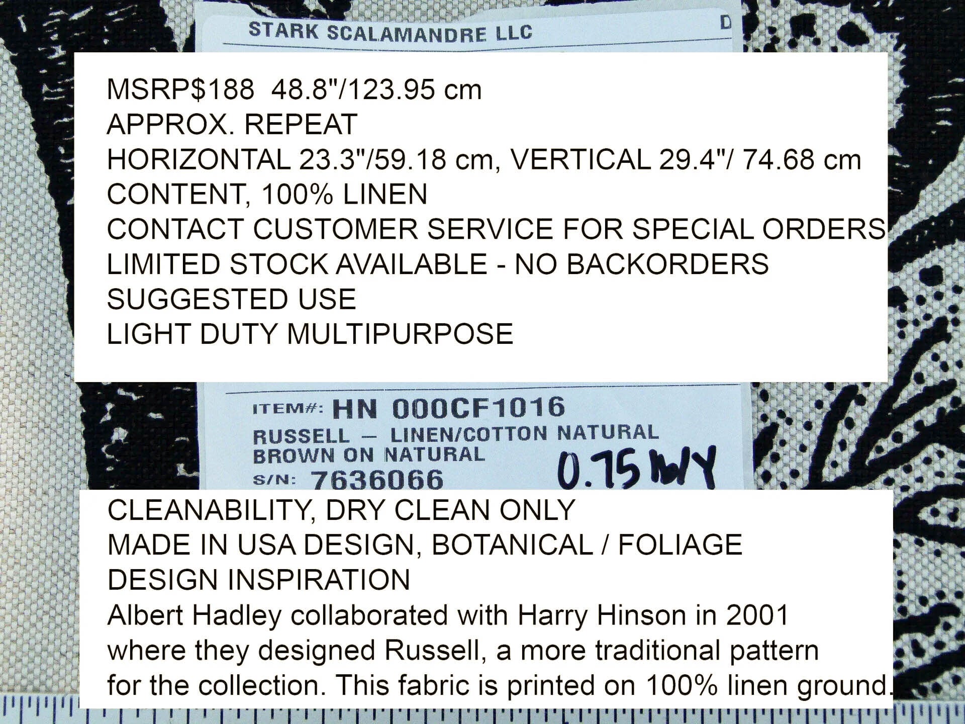 Scalamandre Russell -linen Cotton Natural Brown On Natural Albert Hadley Linen Print Jacobean Tan White Brown MSRP USD 188