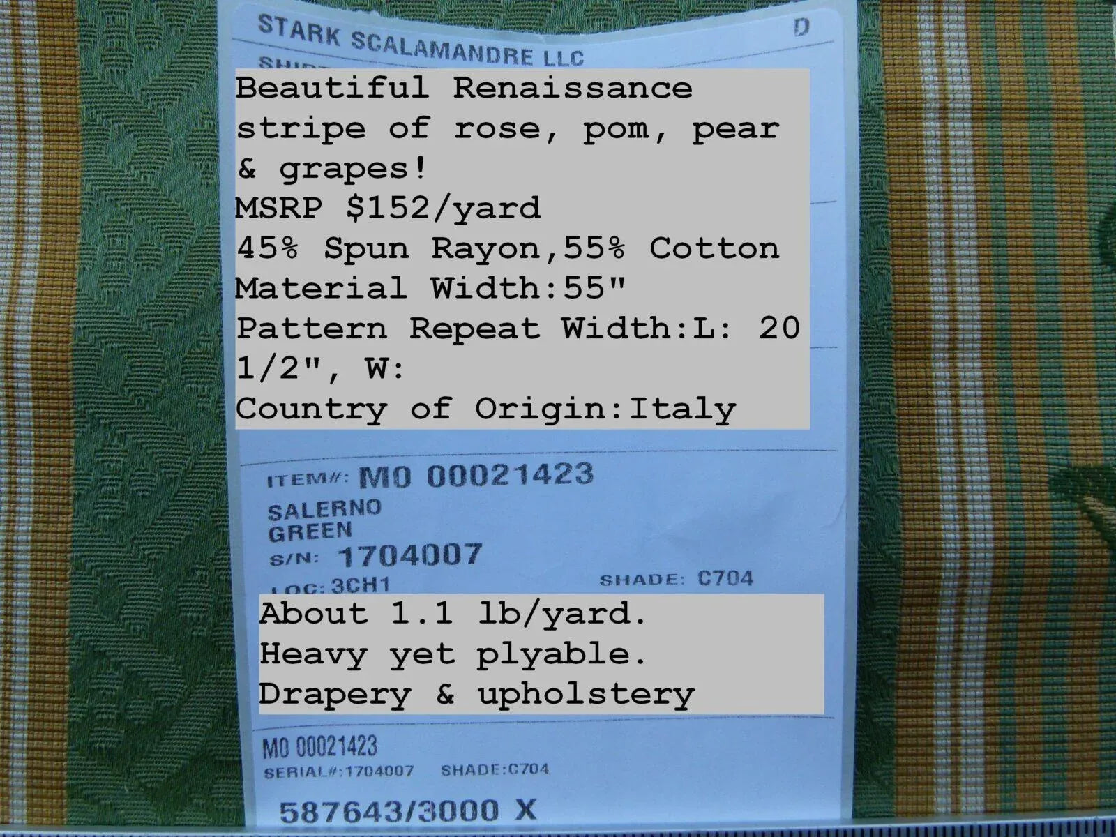 Fiber, repeat, width, weight, country of origin, retail price/yard: