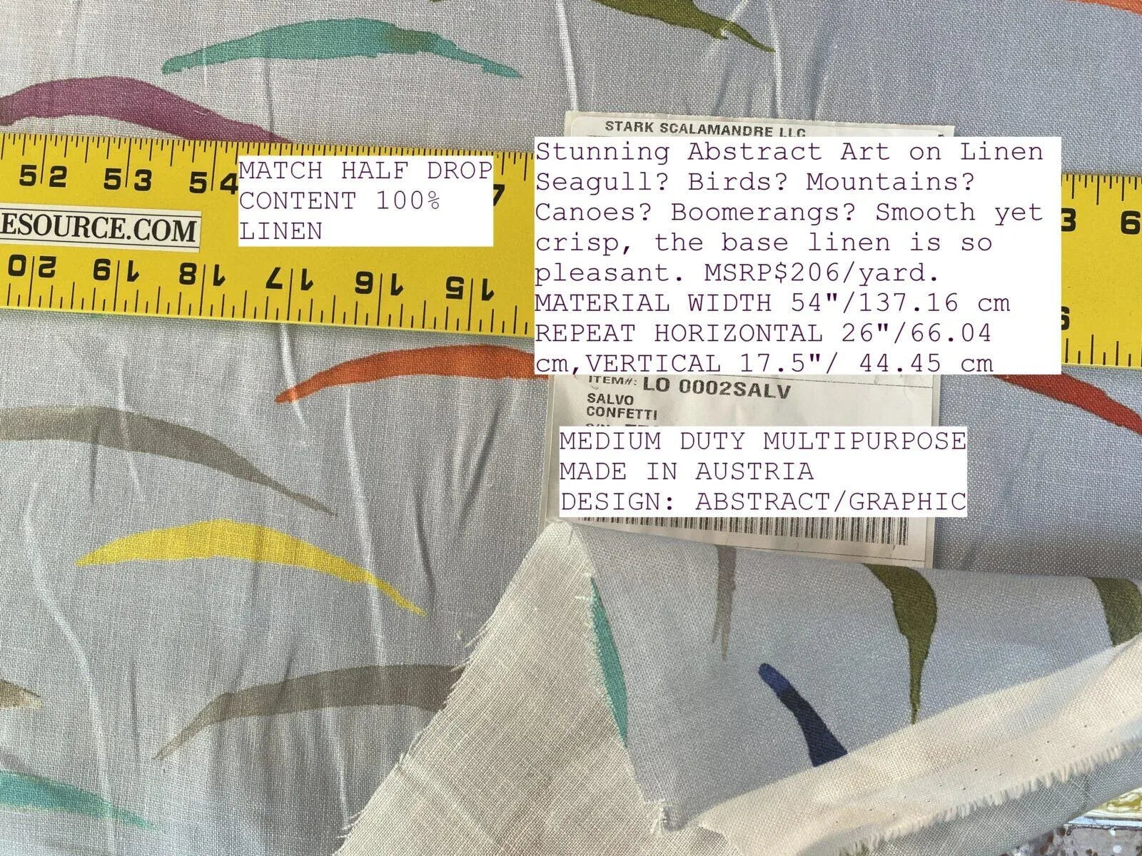 Scalamandre Salvo Confetti MSRP USD 206/Y Stunning Abstract Art On Linen Seagull