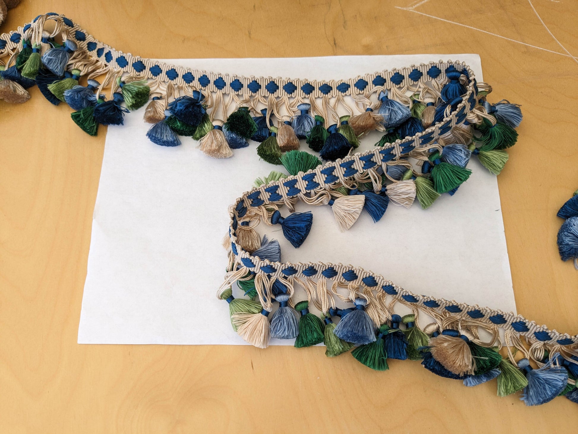 Scalamandre Silk Trim Follies Blue Green Beige Cream Tassel Trim MSRP USD 260/Y
