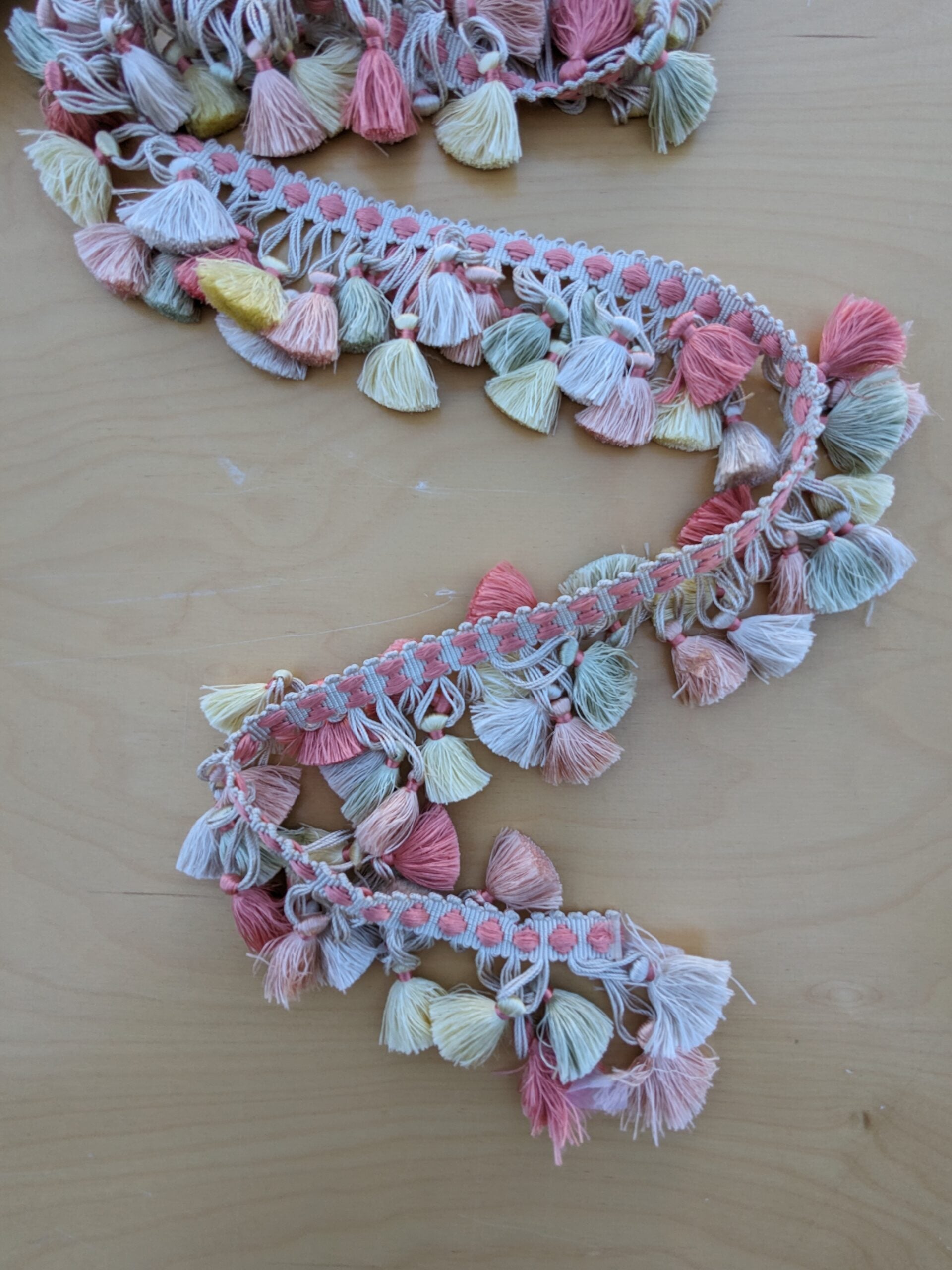 Scalamandre Silk Trim Follies Pink Green Yellow Tassel Coral Trim MSRP USD 260/Y