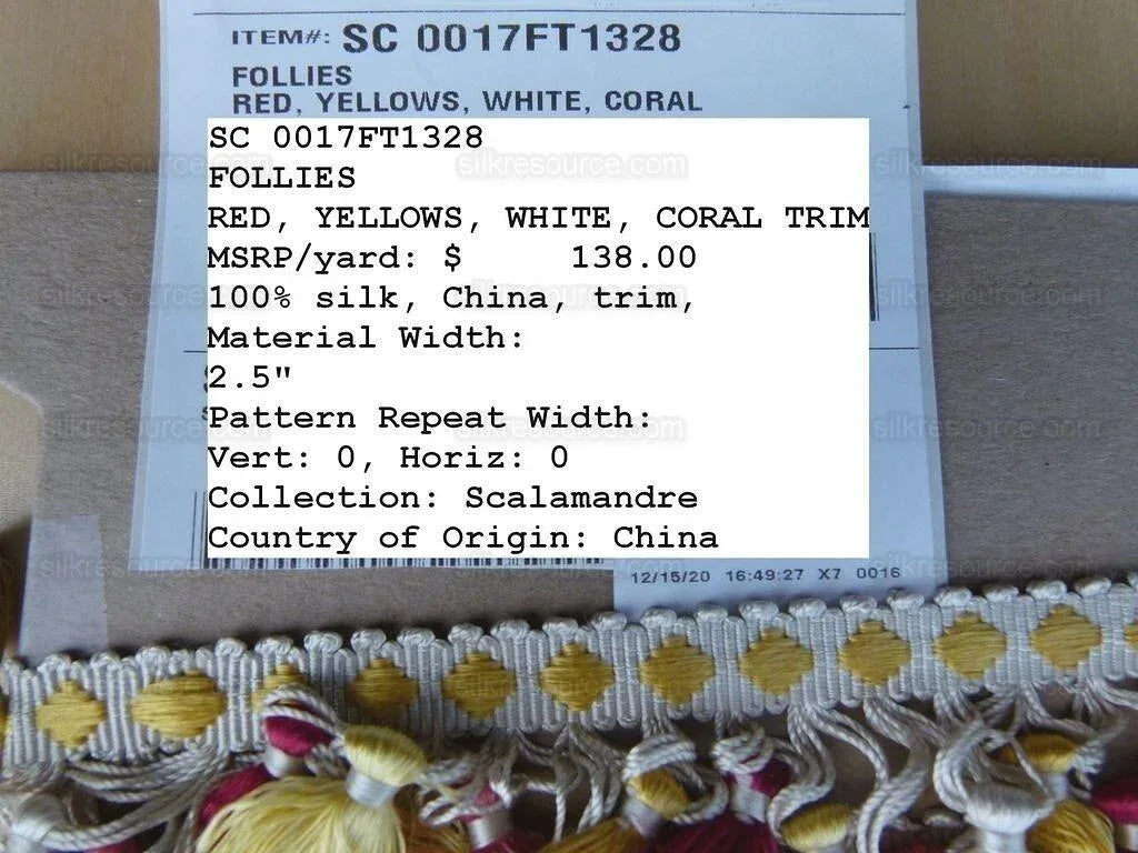 Scalamandre Silk Trim Follies Red Yellow White Coral Tassel Trim MSRP USD 260/Y