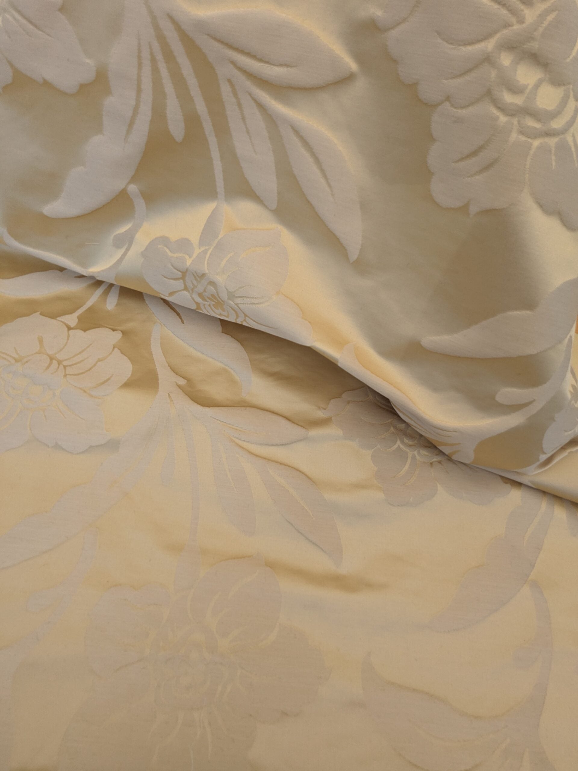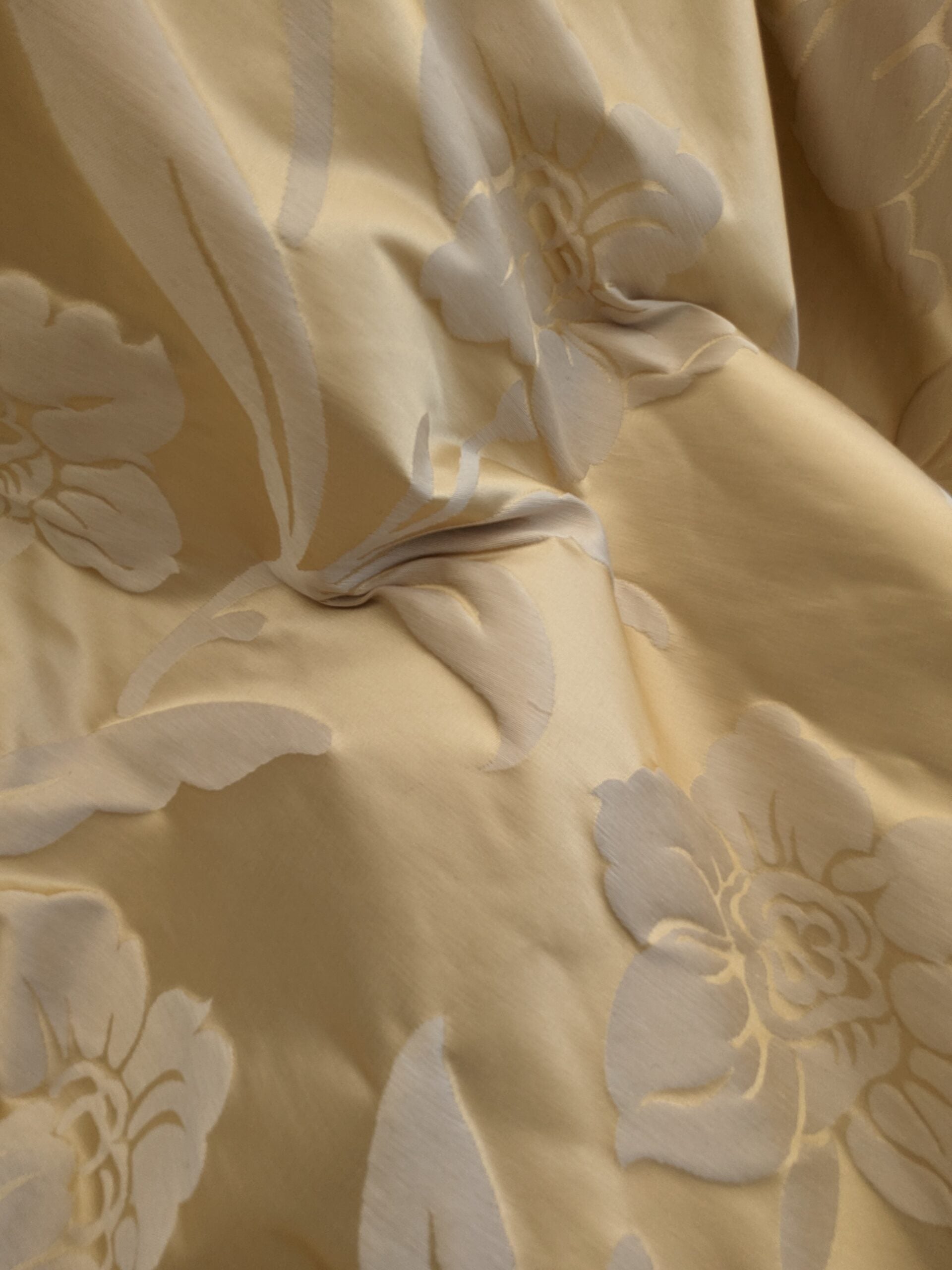 | Sophie is an innocent jacquard of dynamic flowers. The silk and cotton blend gives it iridescent sheen and durability.