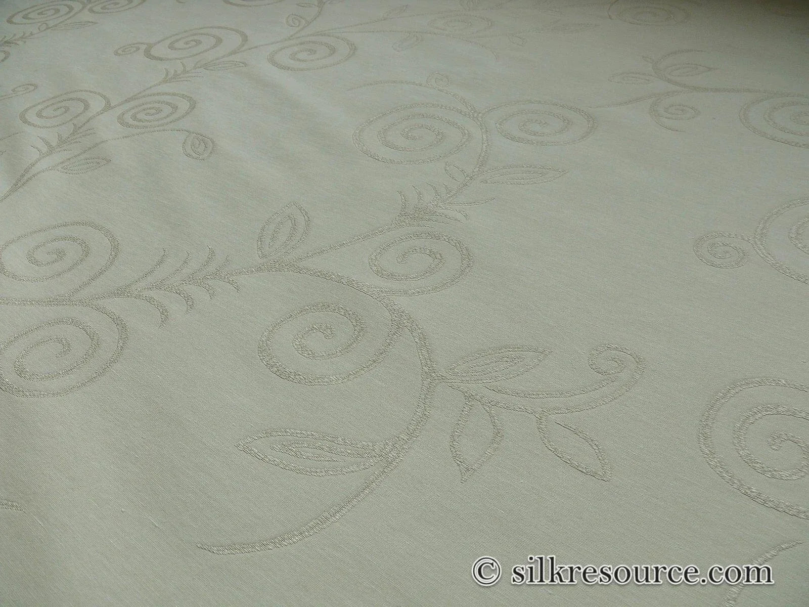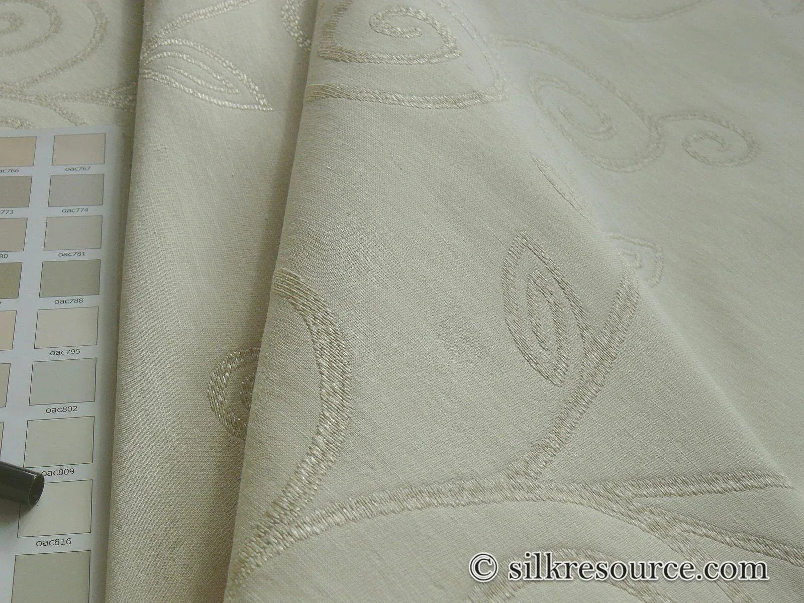 Scalamandre Soren Ivory White Modern Crewel Foliage Vine Linen MSRP USD 185+/Y
