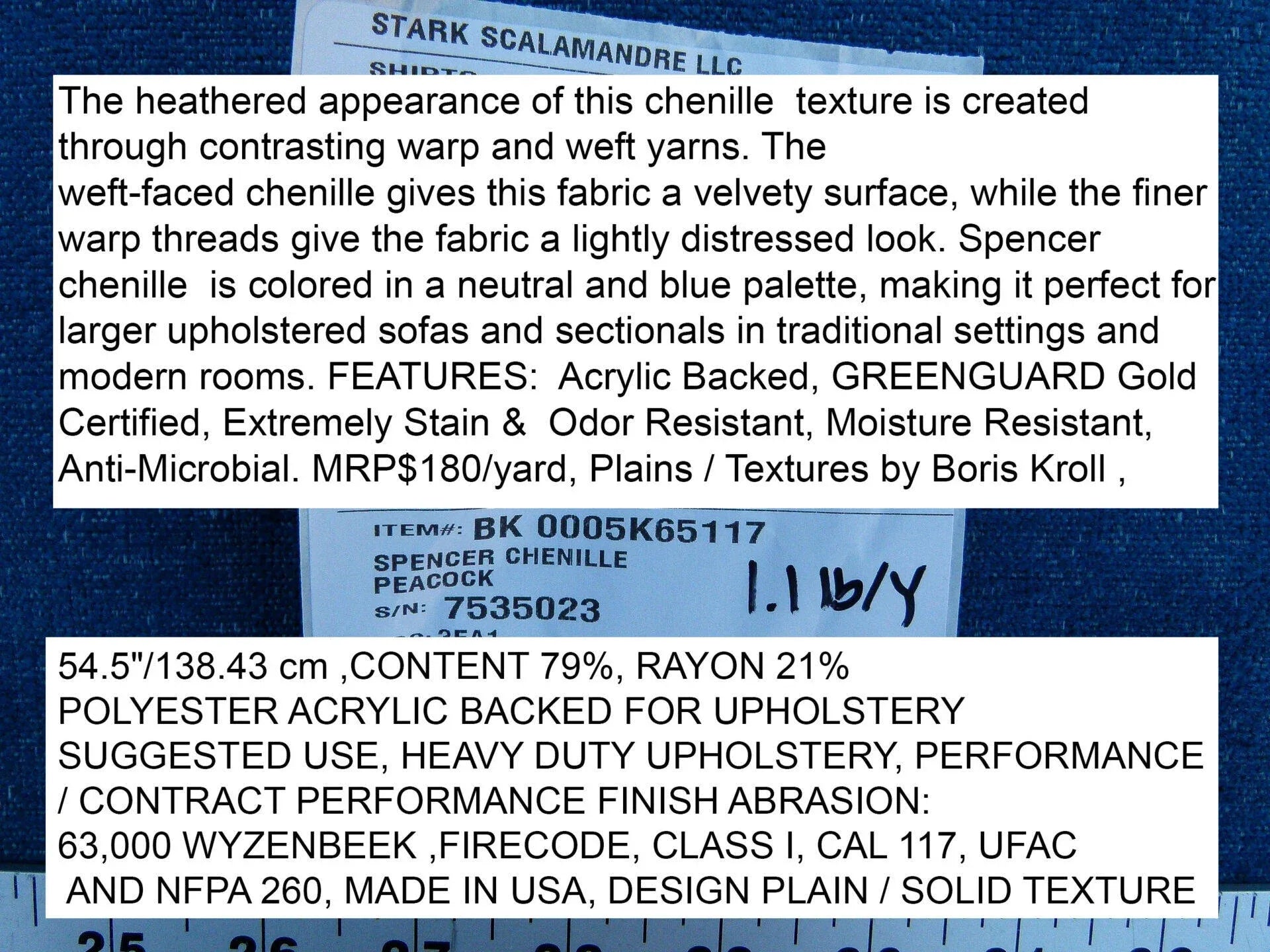 Scalamandre Spencer Chenille Peacock Solid Texture Blue MSRP USD 180/y