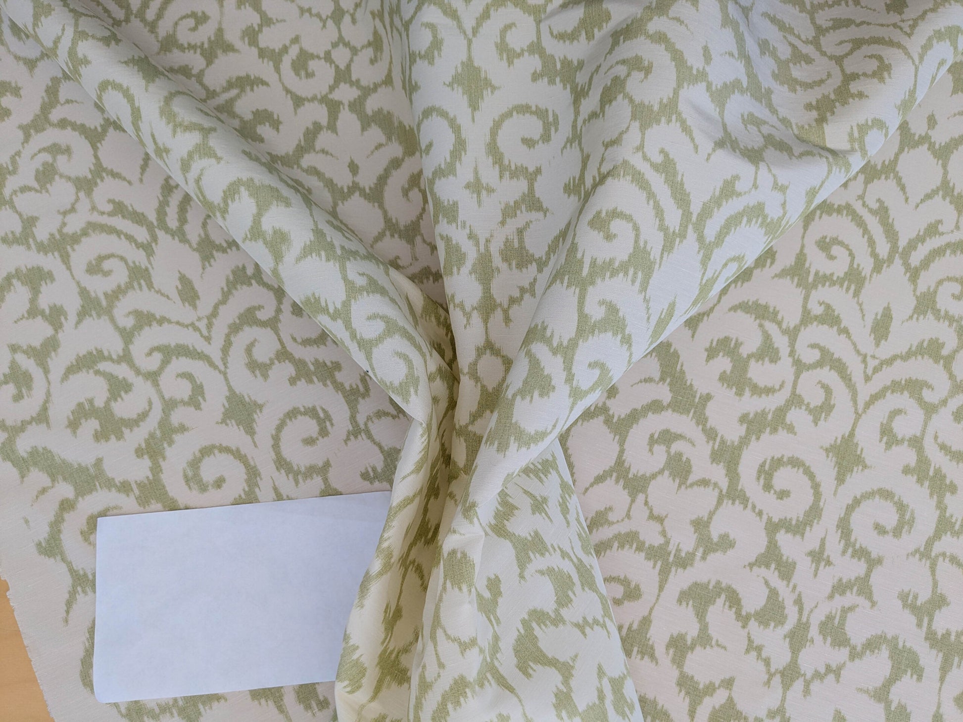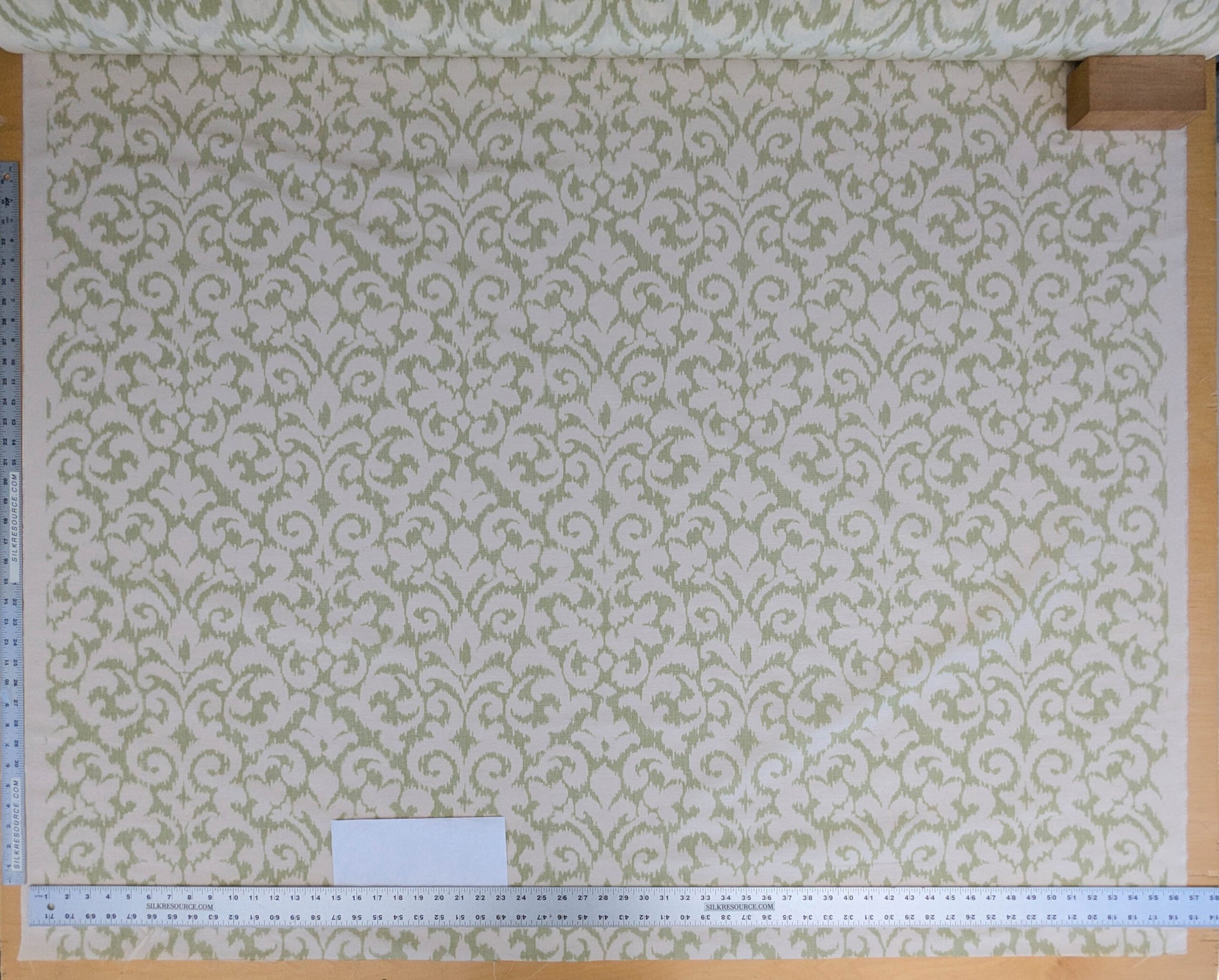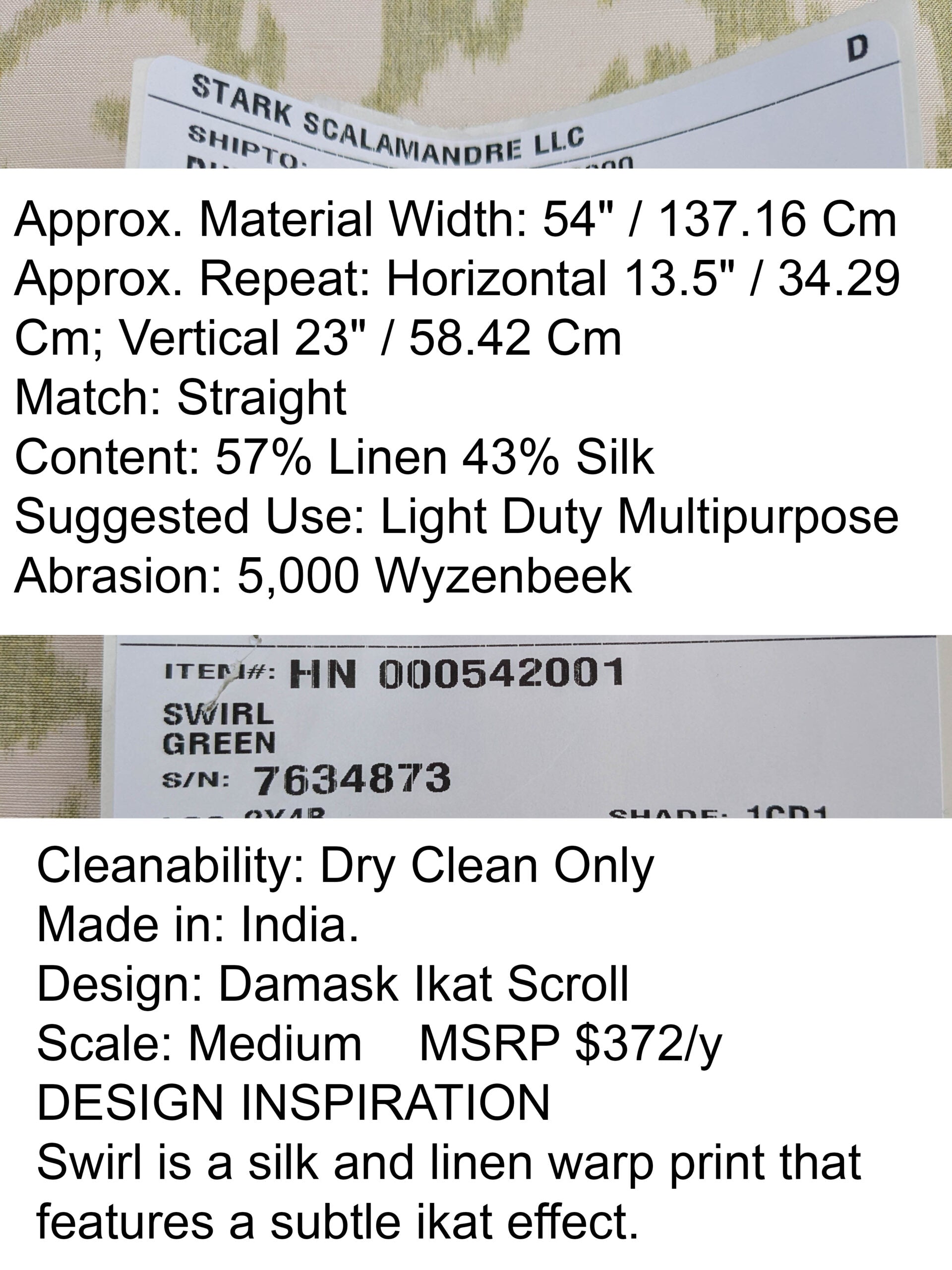 Scalamandre Swirl Green White Scroll Damask Ikat Linen Silk MSRP USD 372/y