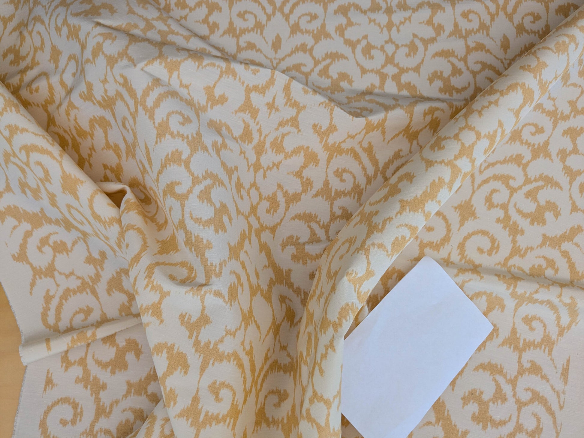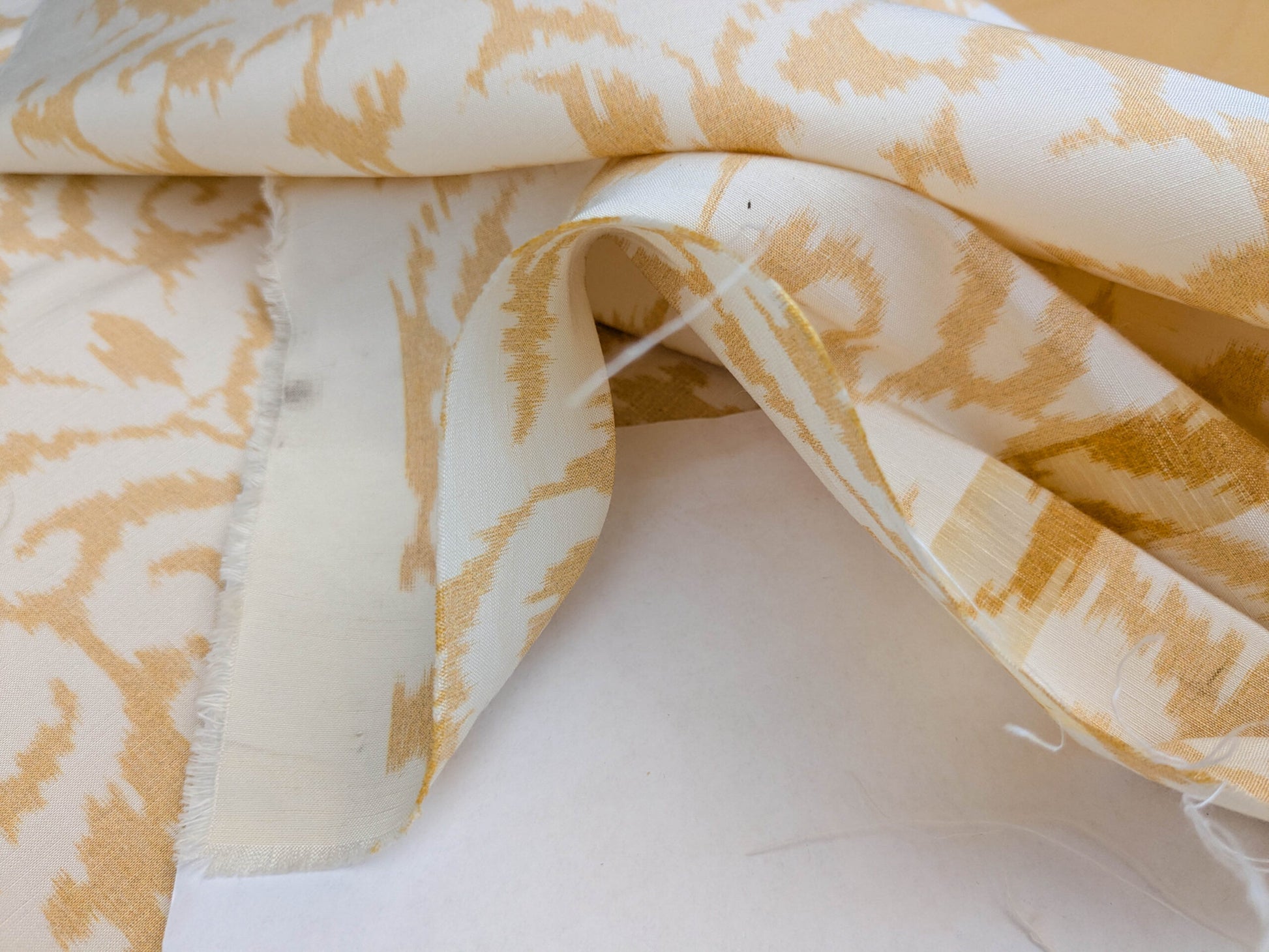 Scalamandre Swirl Yellow White Scroll Damask Ikat Linen Silk Refreshing MSRP USD 372/y