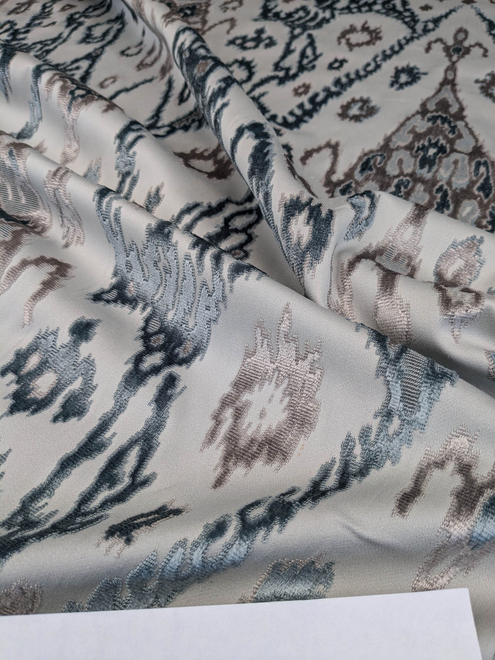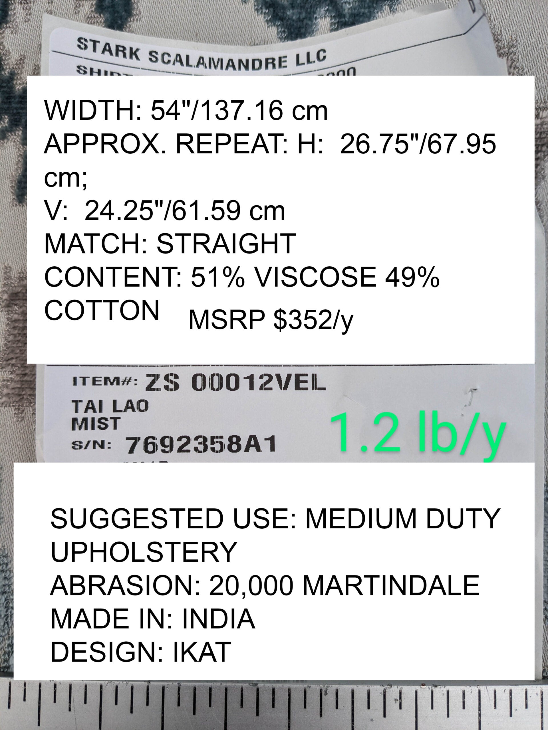Scalamandre Tai Lao Mist Blue Brown Velvet Ikat Paisley Viscose Cotton MSRP USD 532/y