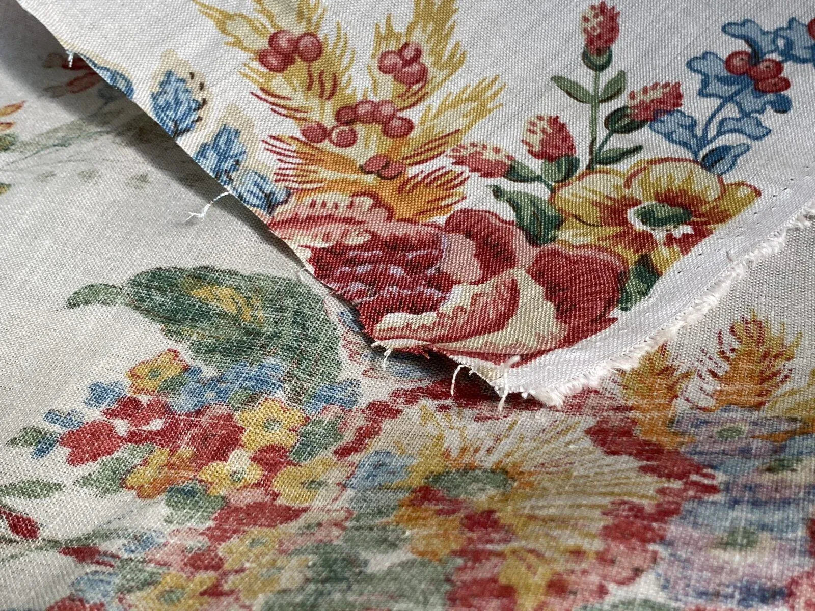 Scalamandre Tarascon Natural MSRP USD 224/Y Linen Chintz Print Flower Field Bouquet From France Red Orange Blue Green Print