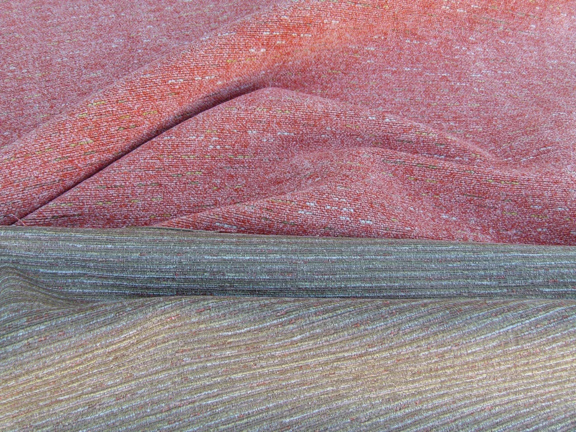 This beautiful quality refines the look and touch of chenille, rendering it fully modern. Two colors of fine linen chenille yarn are twisted together to create the background. Additional weft yarns appear at random to add pops of color, highlight or shadow. The linen chenille, new to the market, provides a surface which is both durable and appealingly matte/dry. Upholstery weight. Linen, Viscose, Poly, Cotton construction.