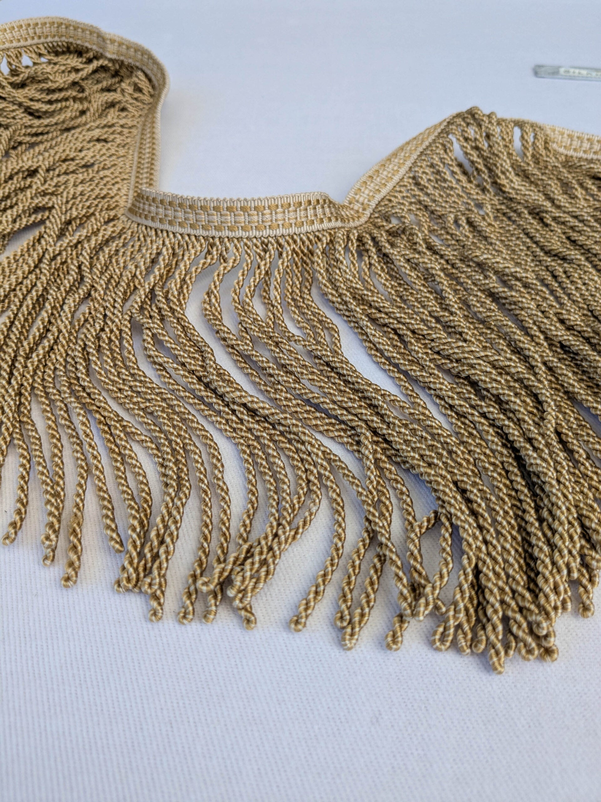 One of trim's big impact with a small material is their texture, while Angel Hair's 8.5" long bullion will explain why. It's length, weight and sheen can bring a project to from "yeah" to "wow".