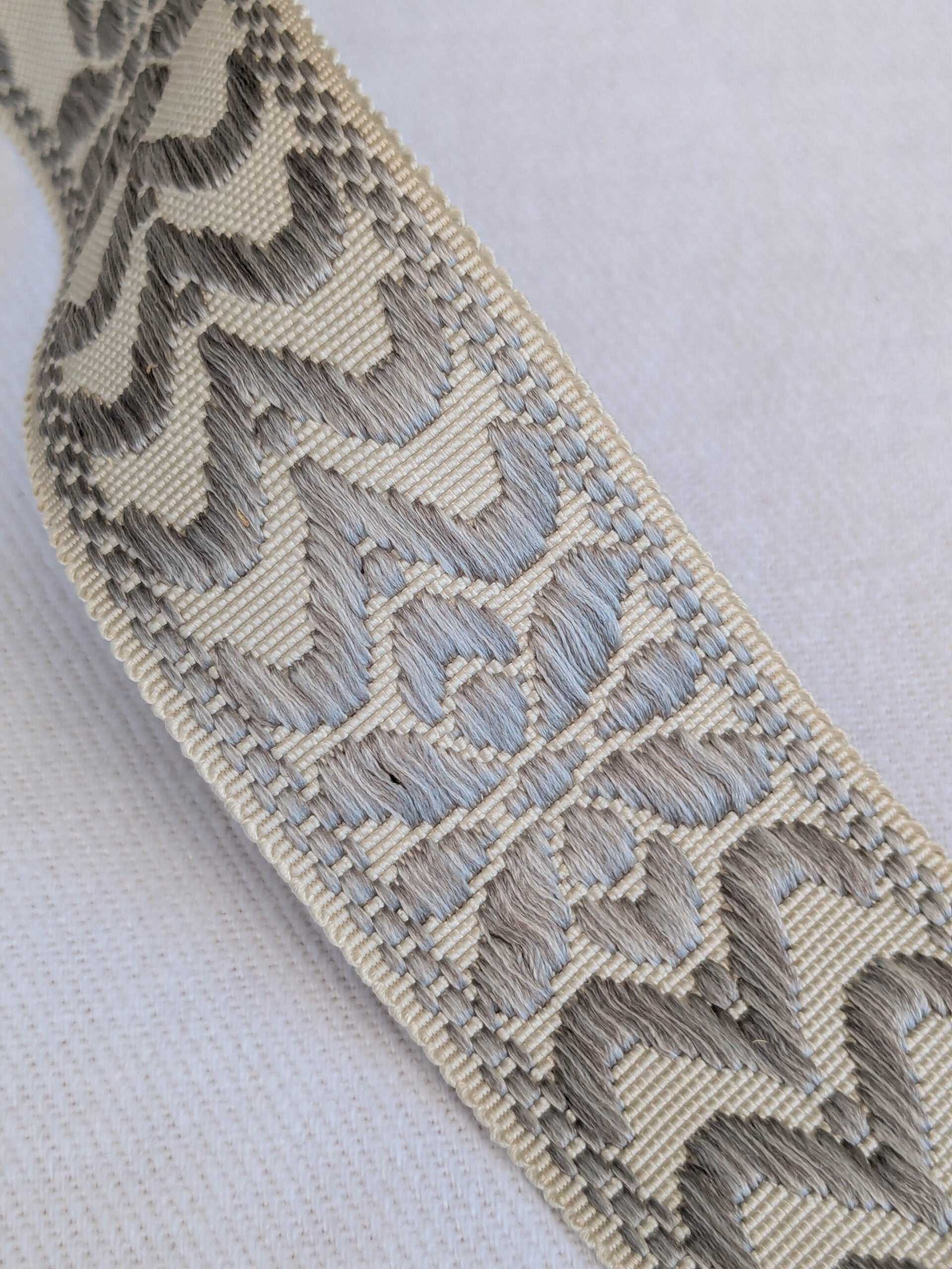 Scalamandre Trim Beauvais Silk Grey on Cream Botanical Foliage Medallion MSRP USD 98/y