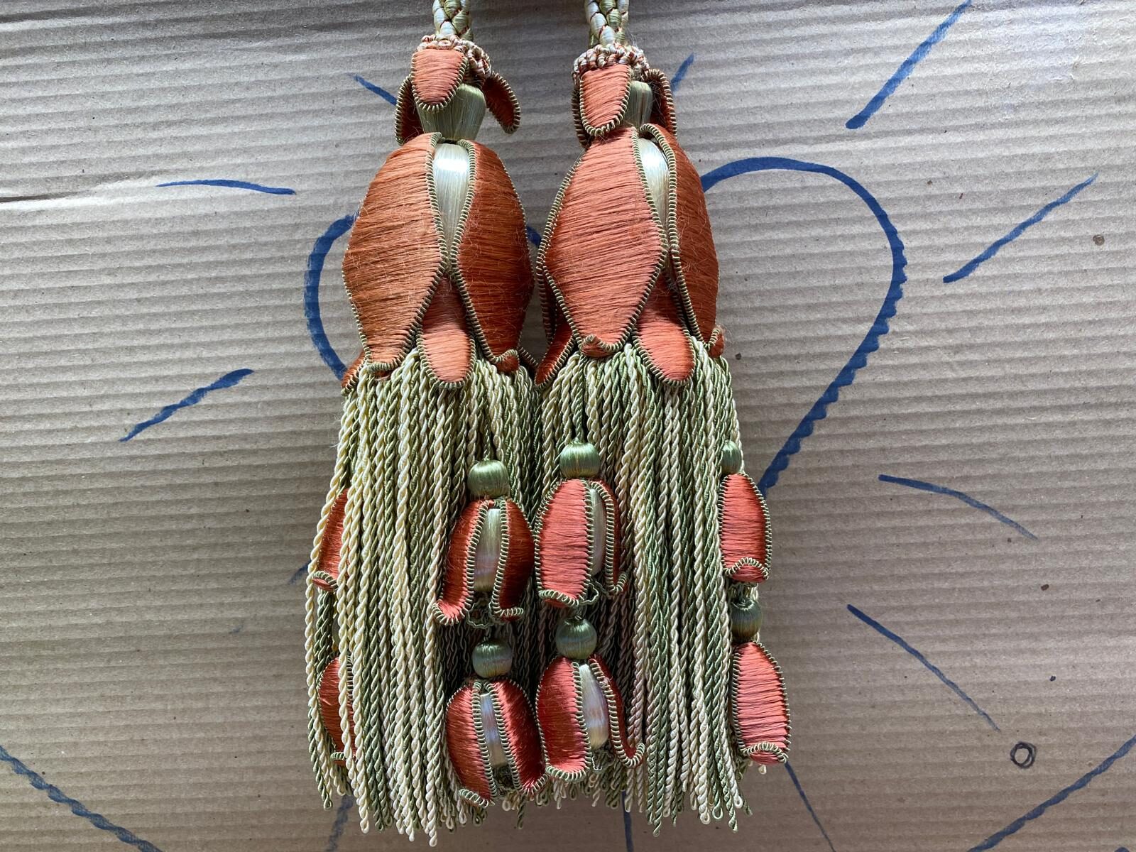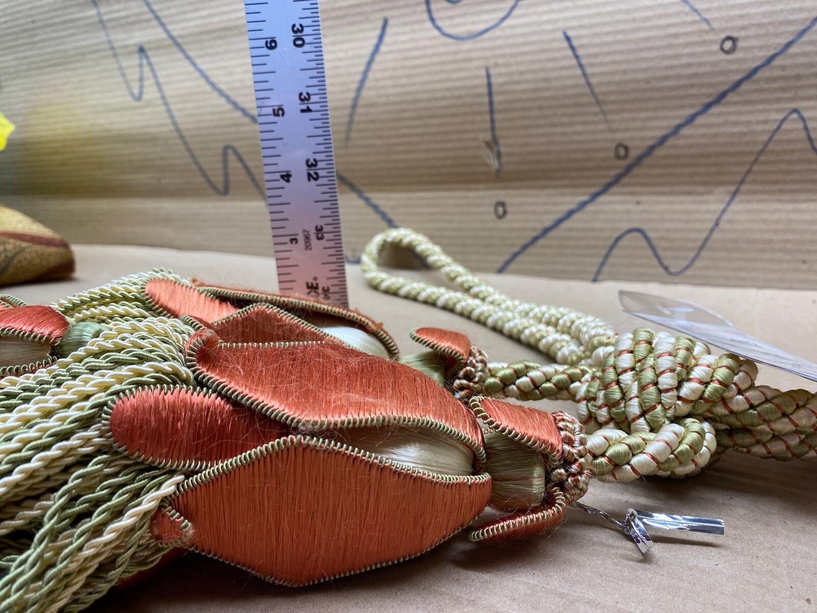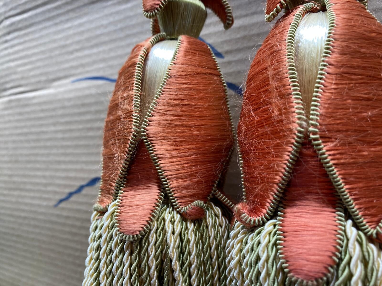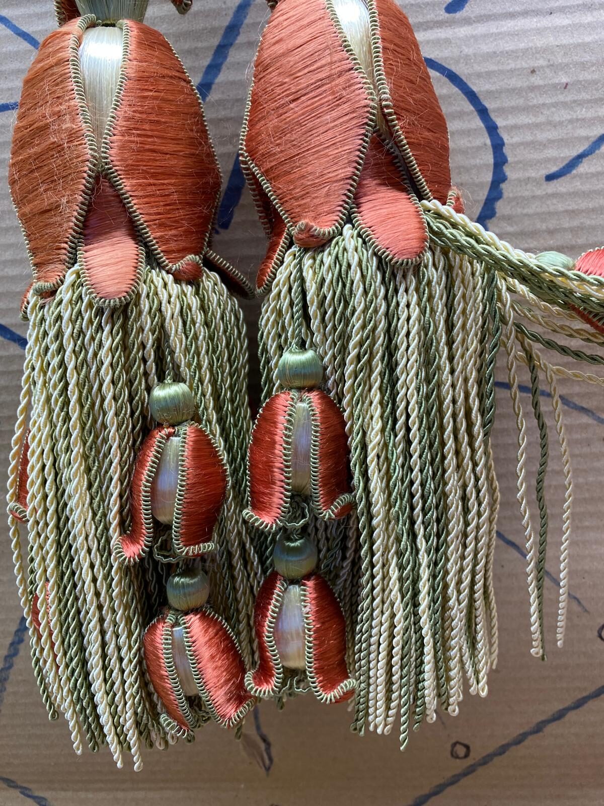 Scalamandre Tulip Tieback Pink Green Cream Tassel Rayon Cotton Wood MSRP USD 1,996