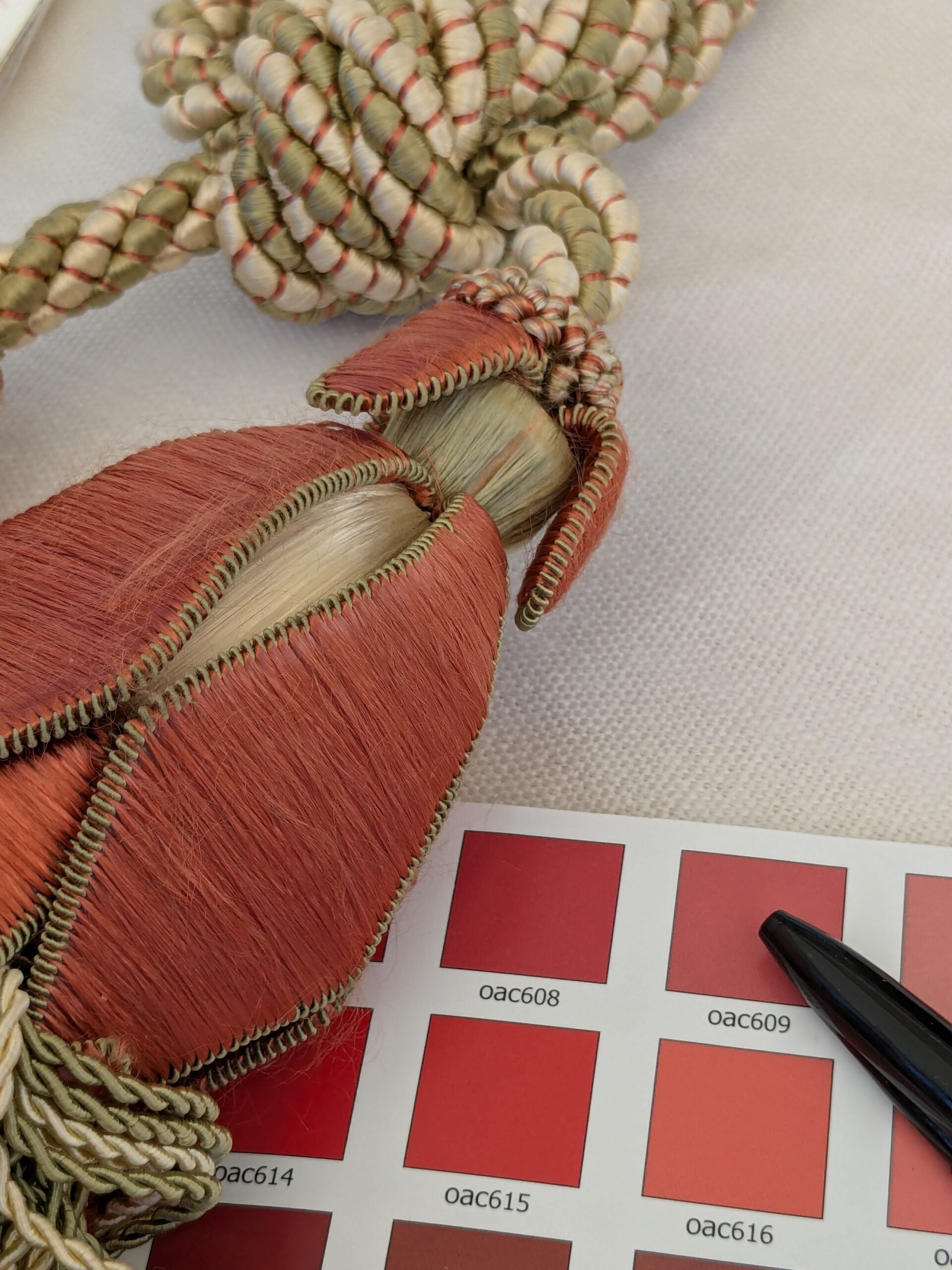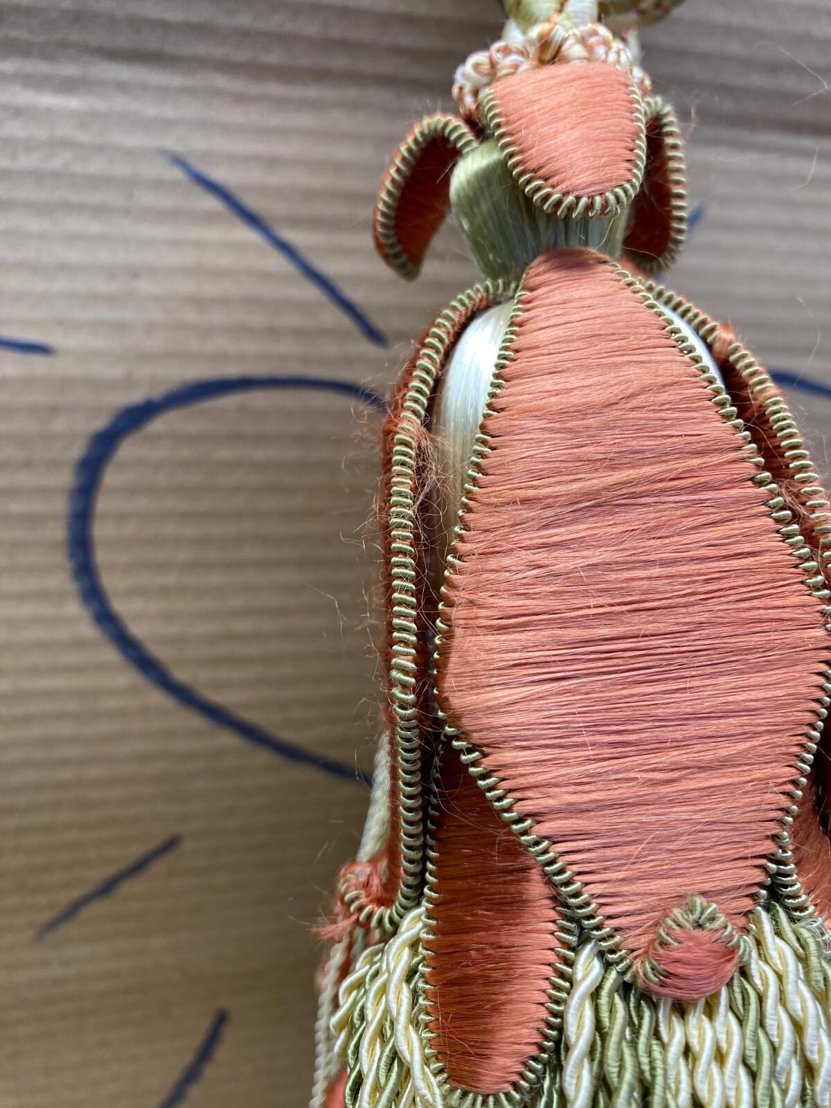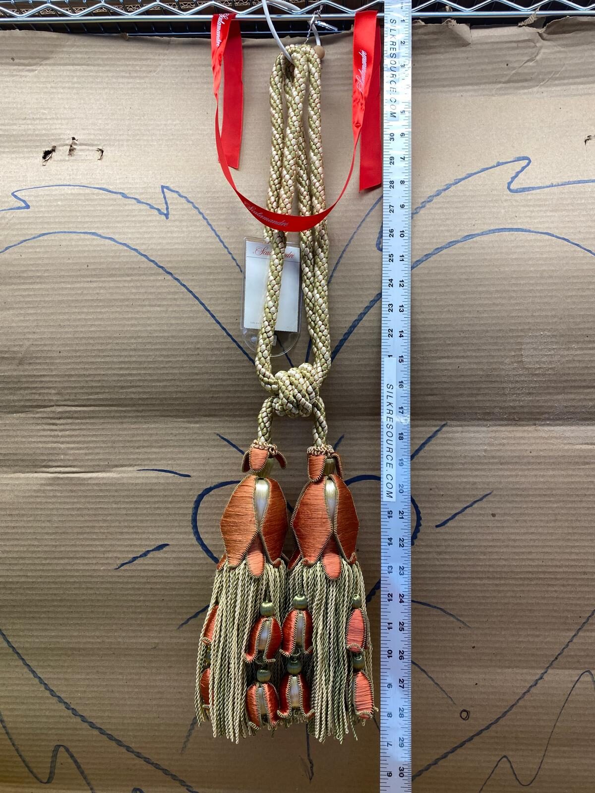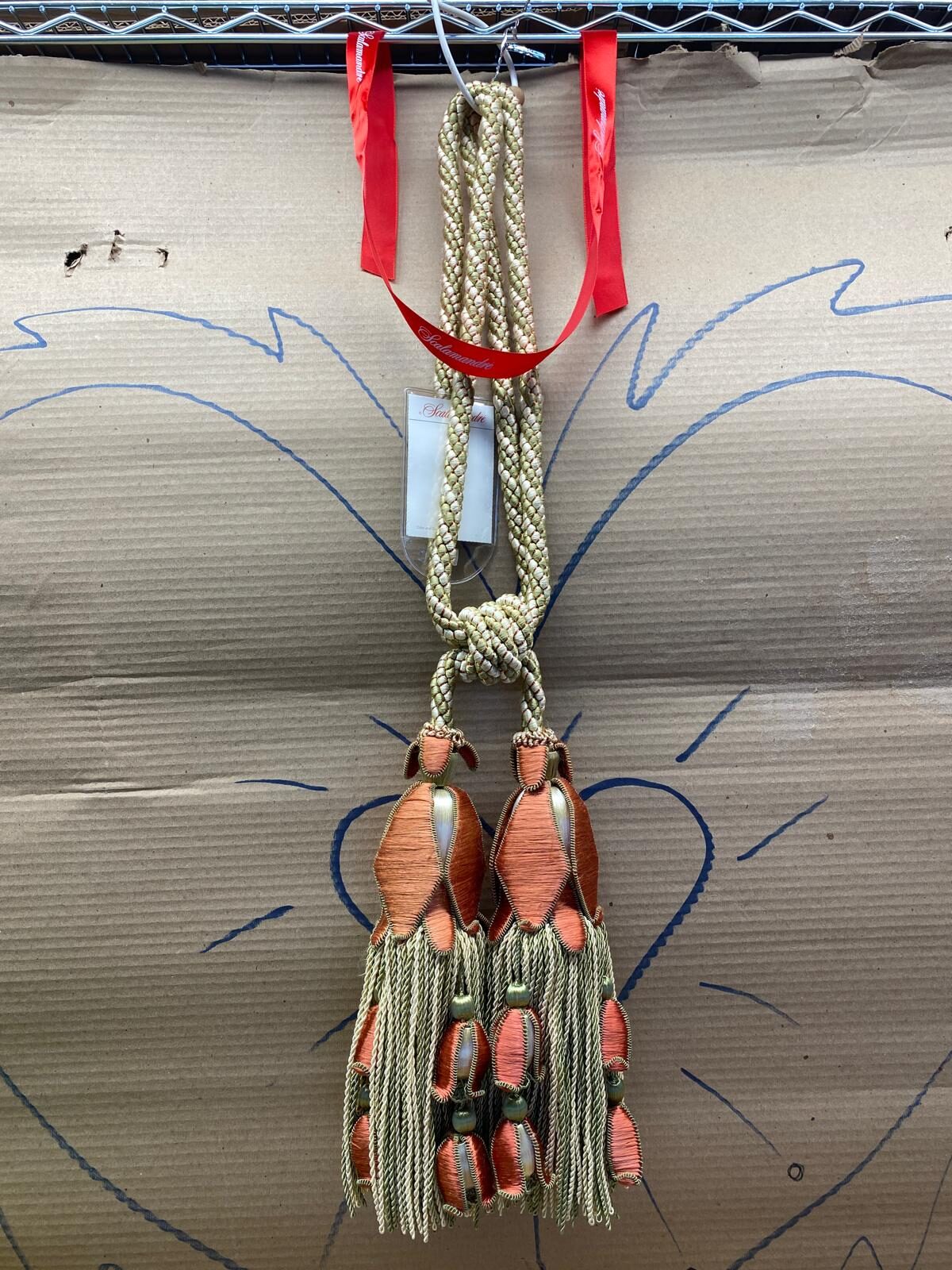 Scalamandre Tulip Tieback Pink Green Cream Tassel Rayon Cotton Wood MSRP USD 1,996