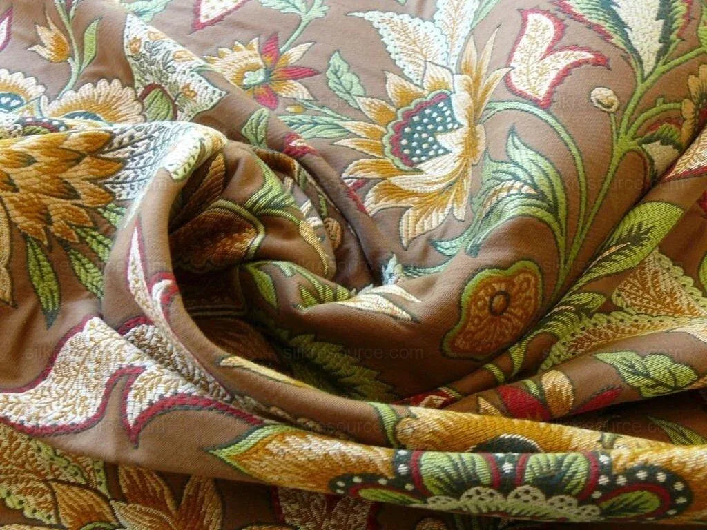 Scalamandre Tullamore Lampas Brown Gold Green Jacobean Flower Bty 26669-006