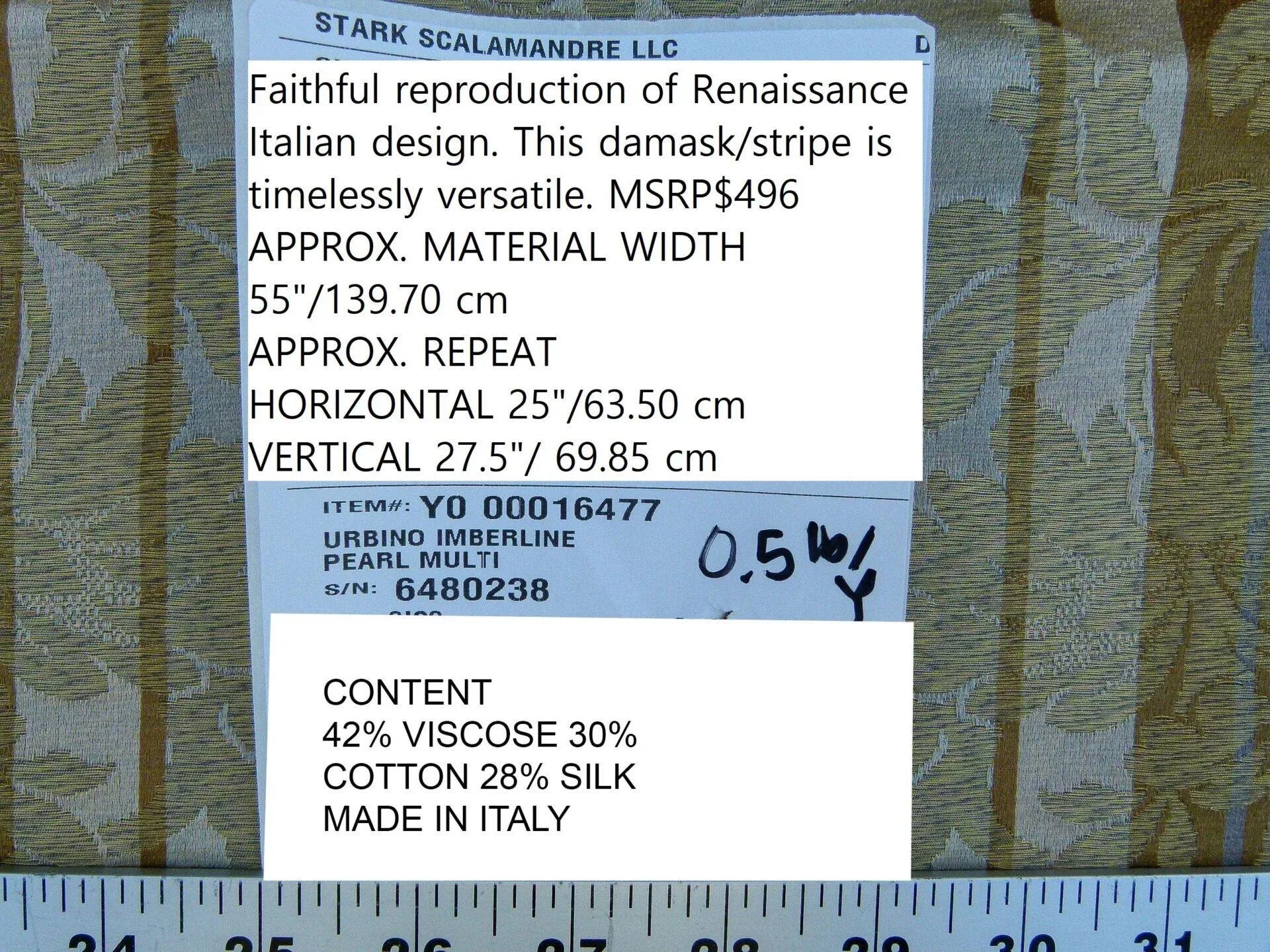 Scalamandre Urbino Imberline Pearl Multi Traditional Damask Stripe Gold MSRP USD 496/yY0 0001 6477