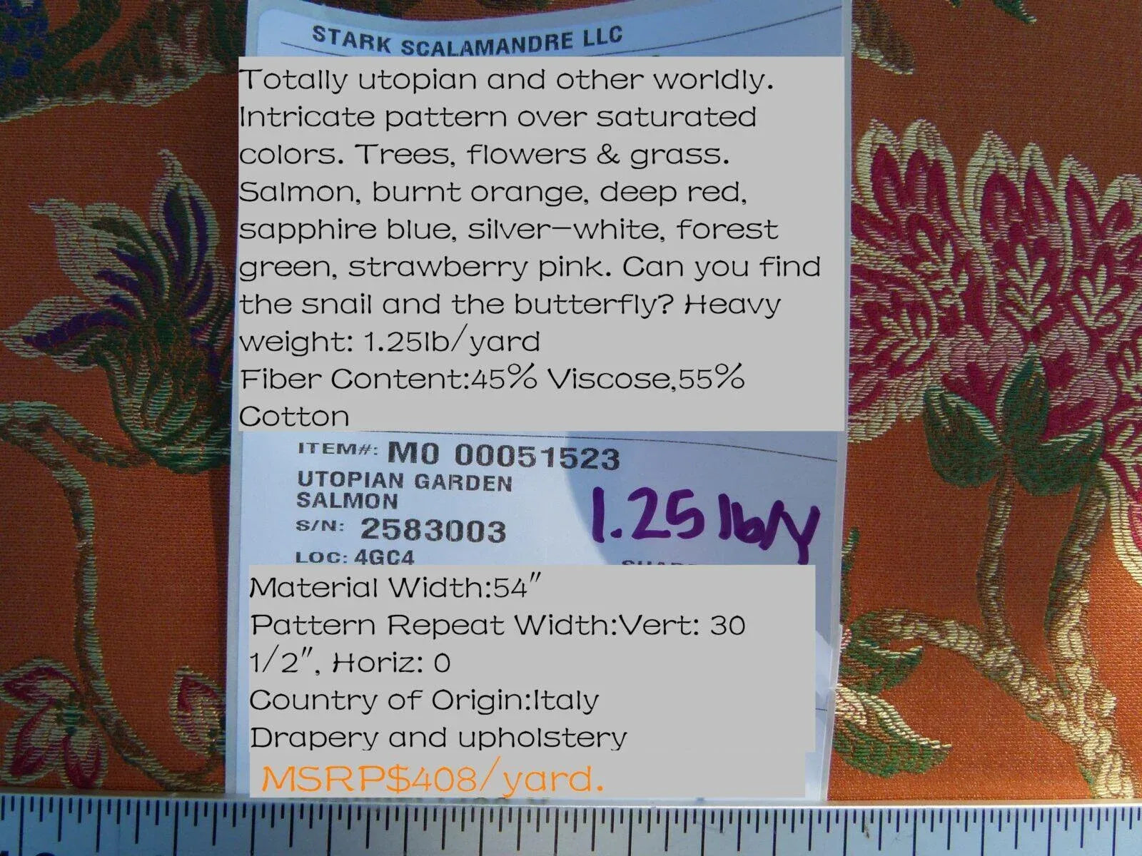 Fiber, repeat, width, weight, country of origin, retail price/yard:
