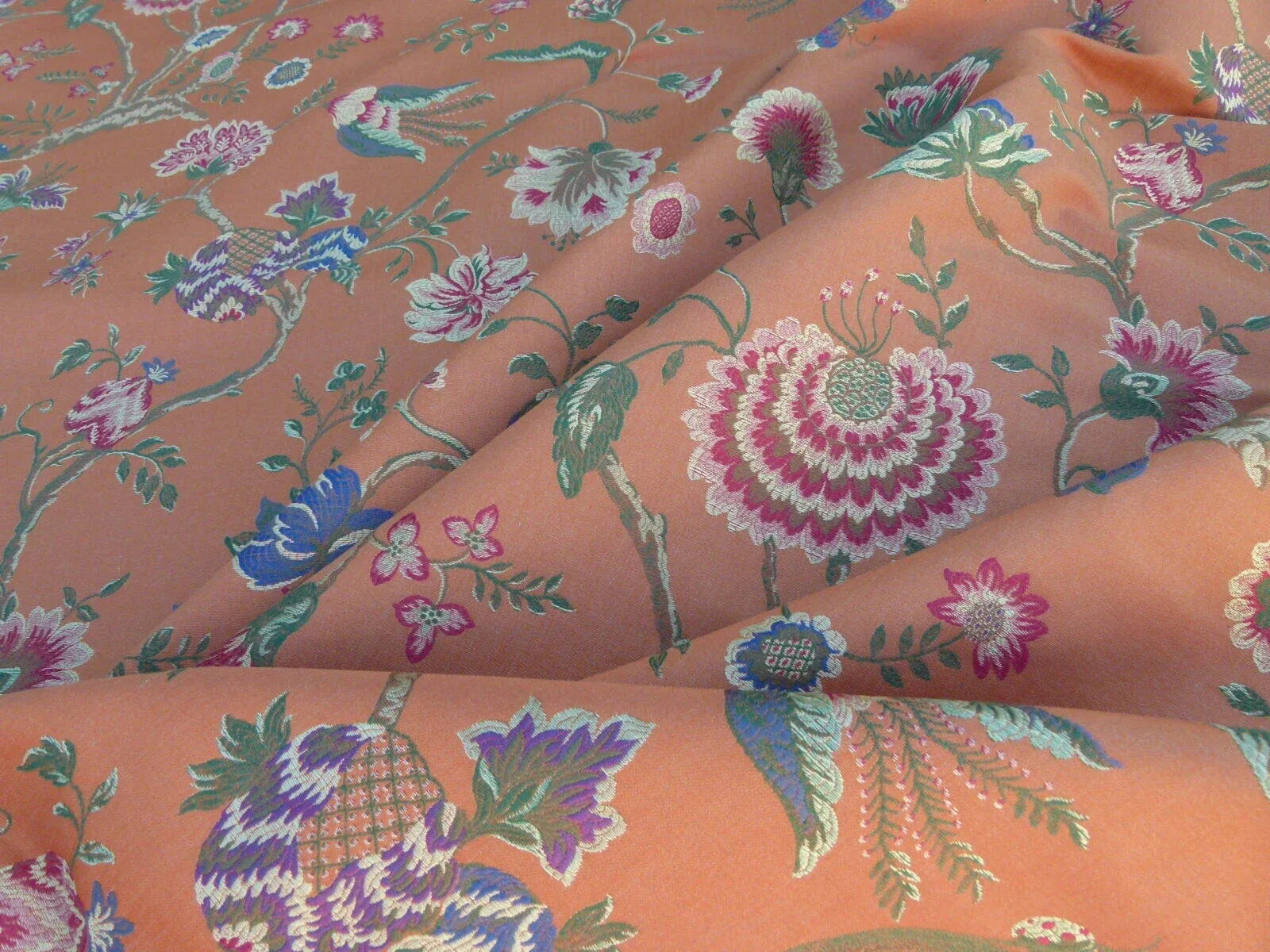Scalamandre Utopian Garden Grey Watkins Salmon Pink Renaissance Floral & Fruits Butterfly Snail Old World Weavers Flower Lampas MSRP USD 408/y