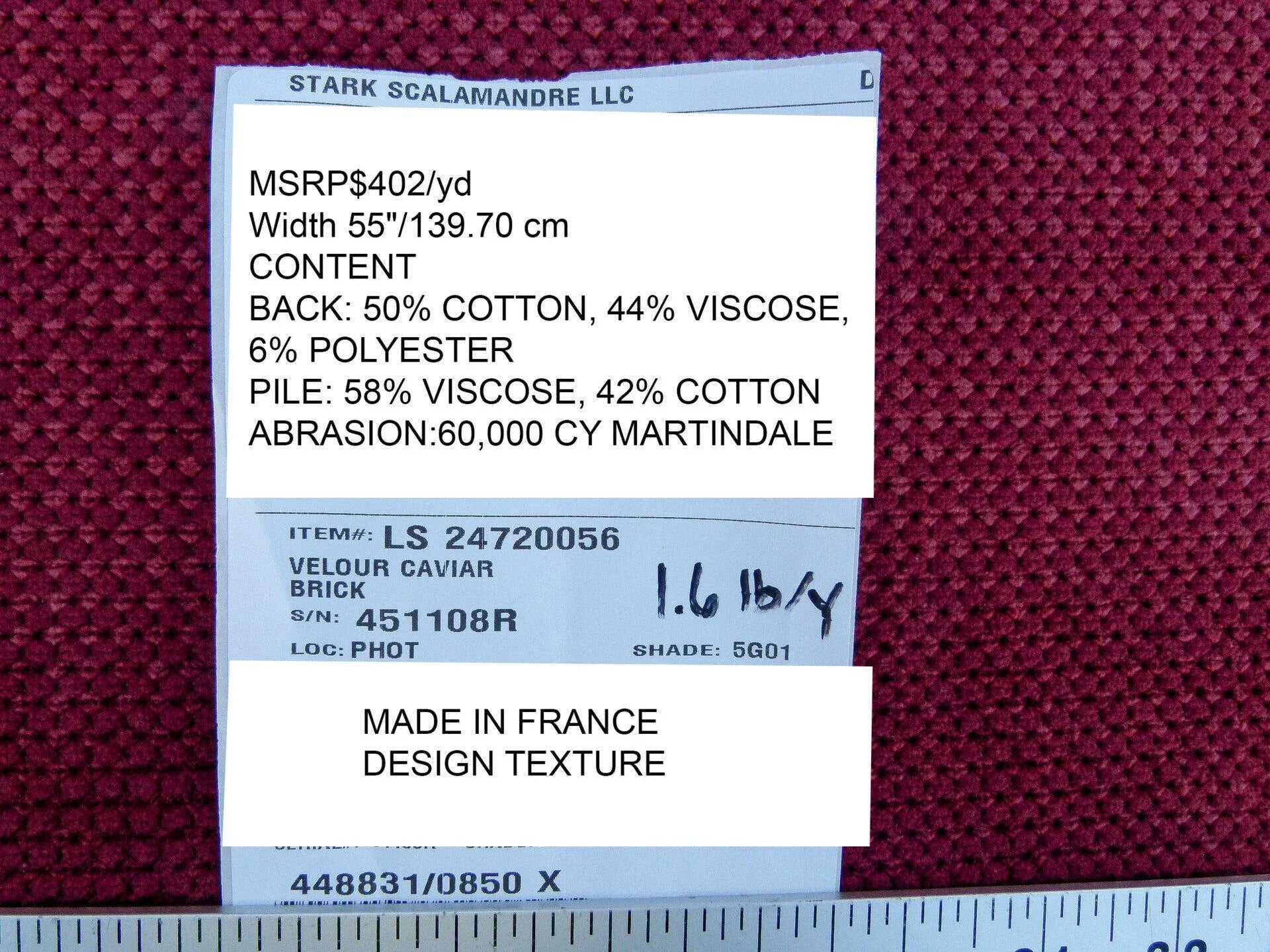 VELOUR Caviar means velour of Caviar. The French didn't spare any cost when creating this "simple" velour. The incredible weight of 1.6lb/yard is impossible to capture by a camera. This soft yet heavy woven can be used in any room. Its confident yet gentle personality will bring such calmness to any space. The honeycombed surface will absorb much noise as well----acrostic enhancement is another benefit of high end woven textile.