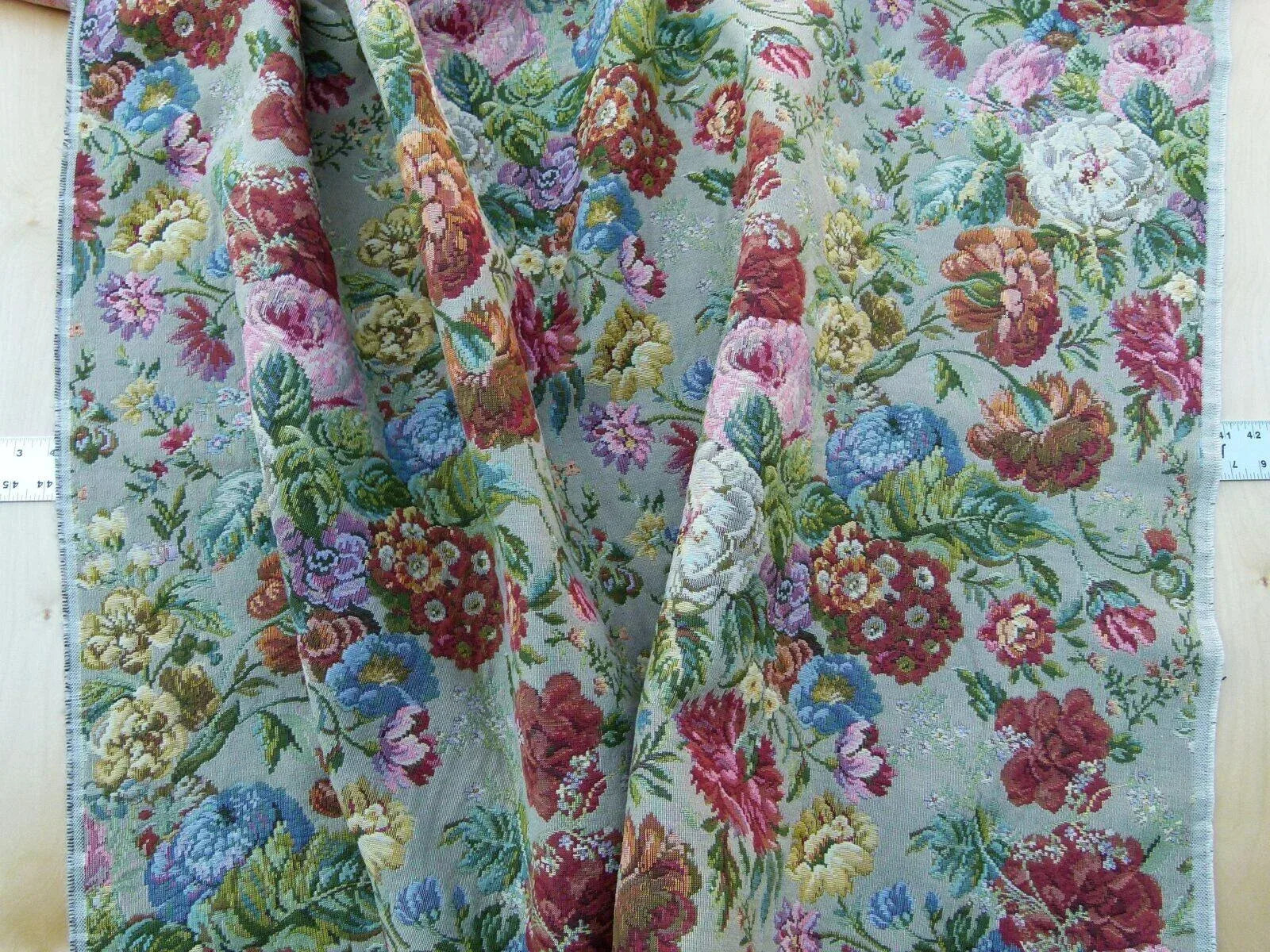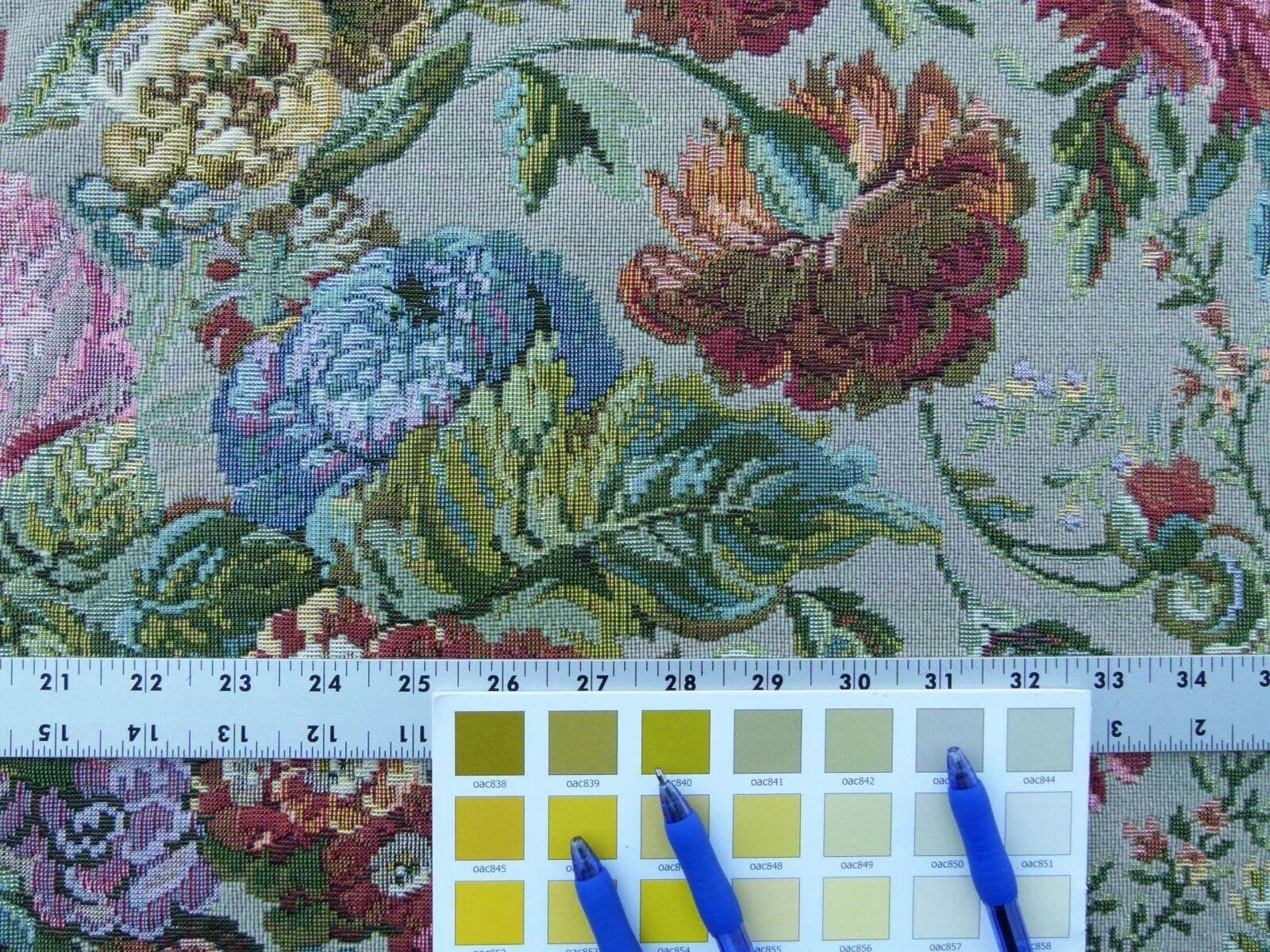 MSRP $188/yard a few years ago. Similar tapestry now retails for about $280/yard. Color: Neutral, Beige, White, red, pink, green, blue, gold, yellow 2% Polyprone,18% Cotton,28% Acrylic,52% Rayon |