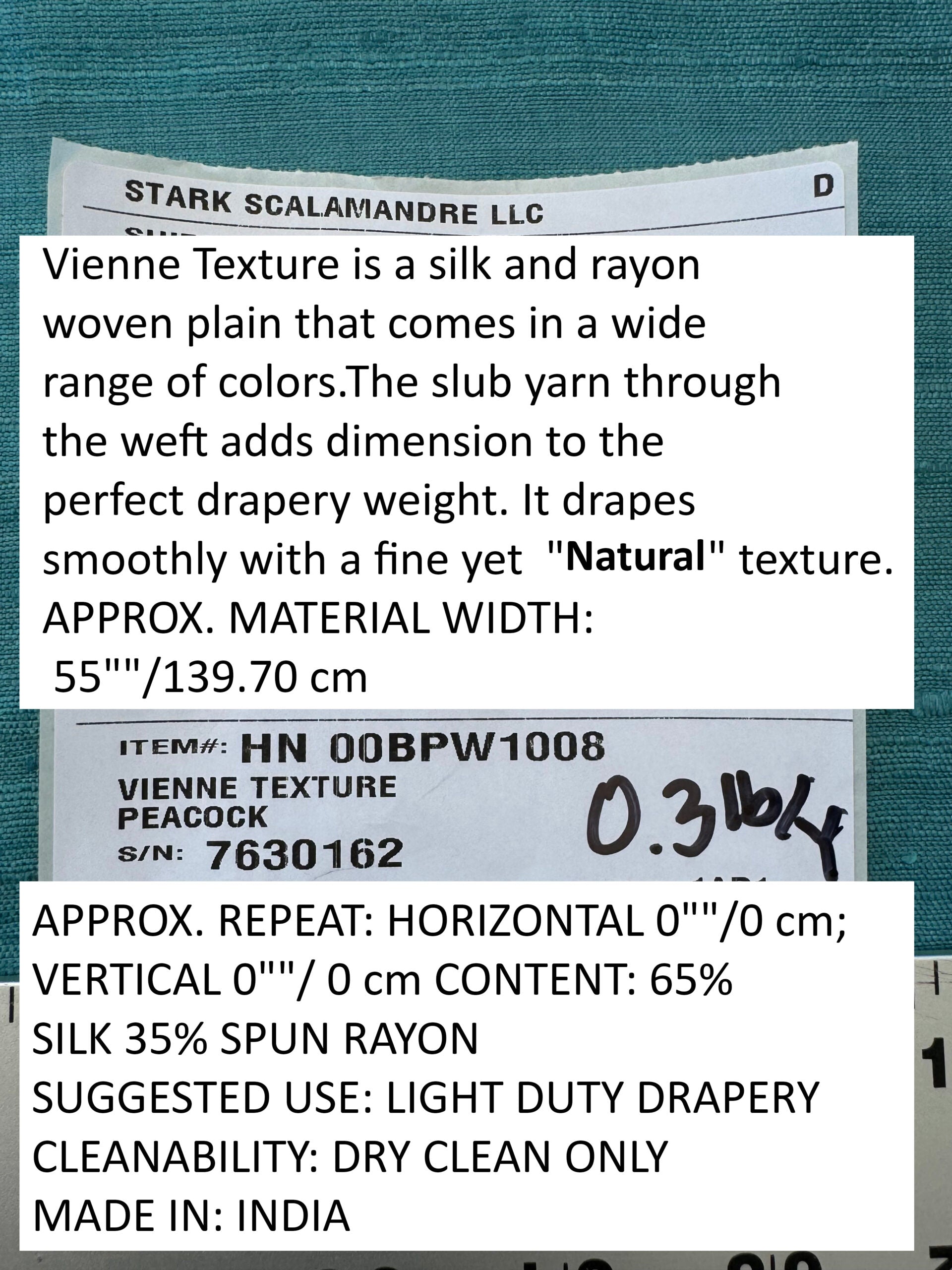 Scalamandre Vienne Texture Peacock Blue Silk Solid Texture MSRP USD 276/y