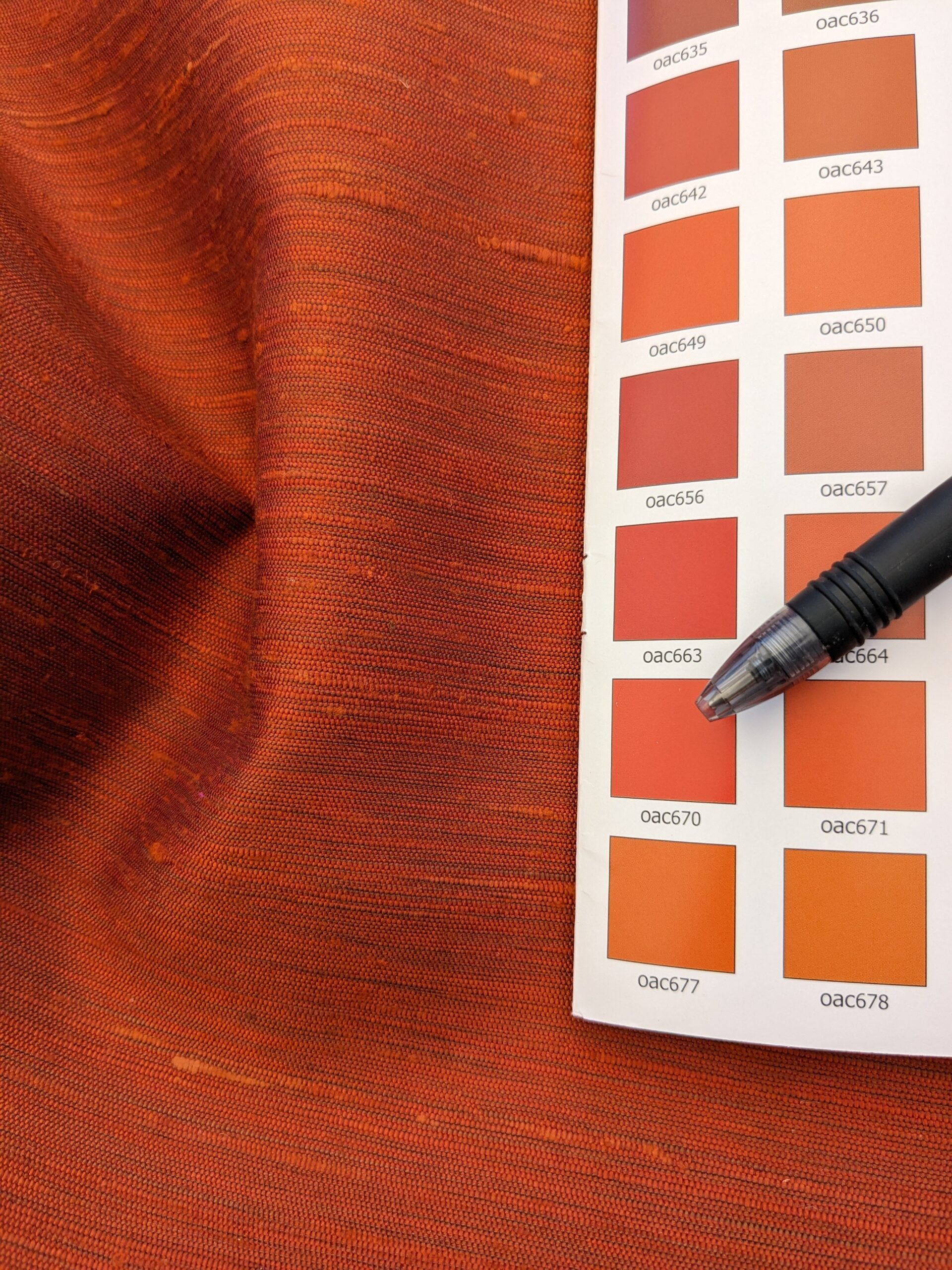 Vienne Texture is a silk and rayon woven plain that comes in a wide range of colors. The slub yarn through the weft adds dimension to the perfect drapery weight. It drapes smoothly with a fine yet “Natural” texture. Unlike solids, this textured silk displays a high iridescency and even a subtle 3-dimensional effect. It shimmers and changes in different lights and winds, almost like a gem stone.