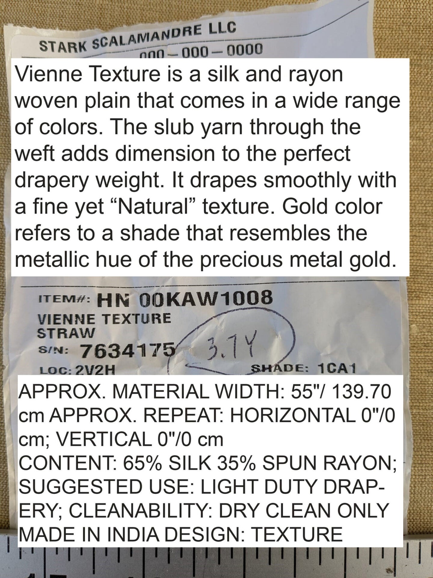 A straw color typically refers to a pale yellow or light gold shade, resembling the hue of dry, harvested straw. Vienne Texture is softer and not suitable for upholstery. APPROX. MATERIAL WIDTH: 55"/ 139.70 cm