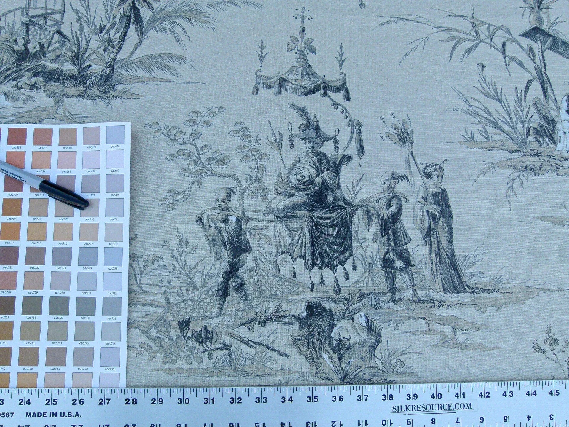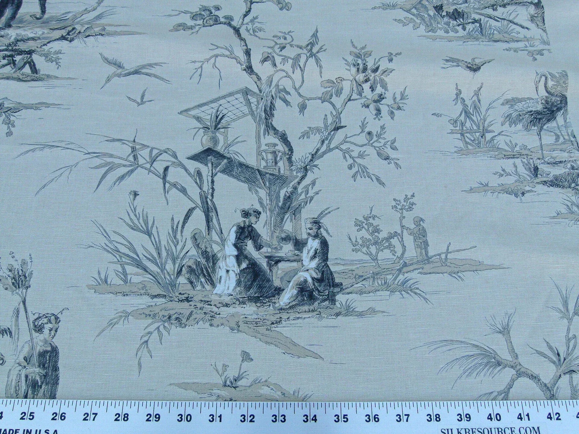 The charm of Old World charm of the copperplate. Copperplate was first engraved and then printed onto linen and cotton blend plain cloth. Old World Weavers revived this antique textile accurately.