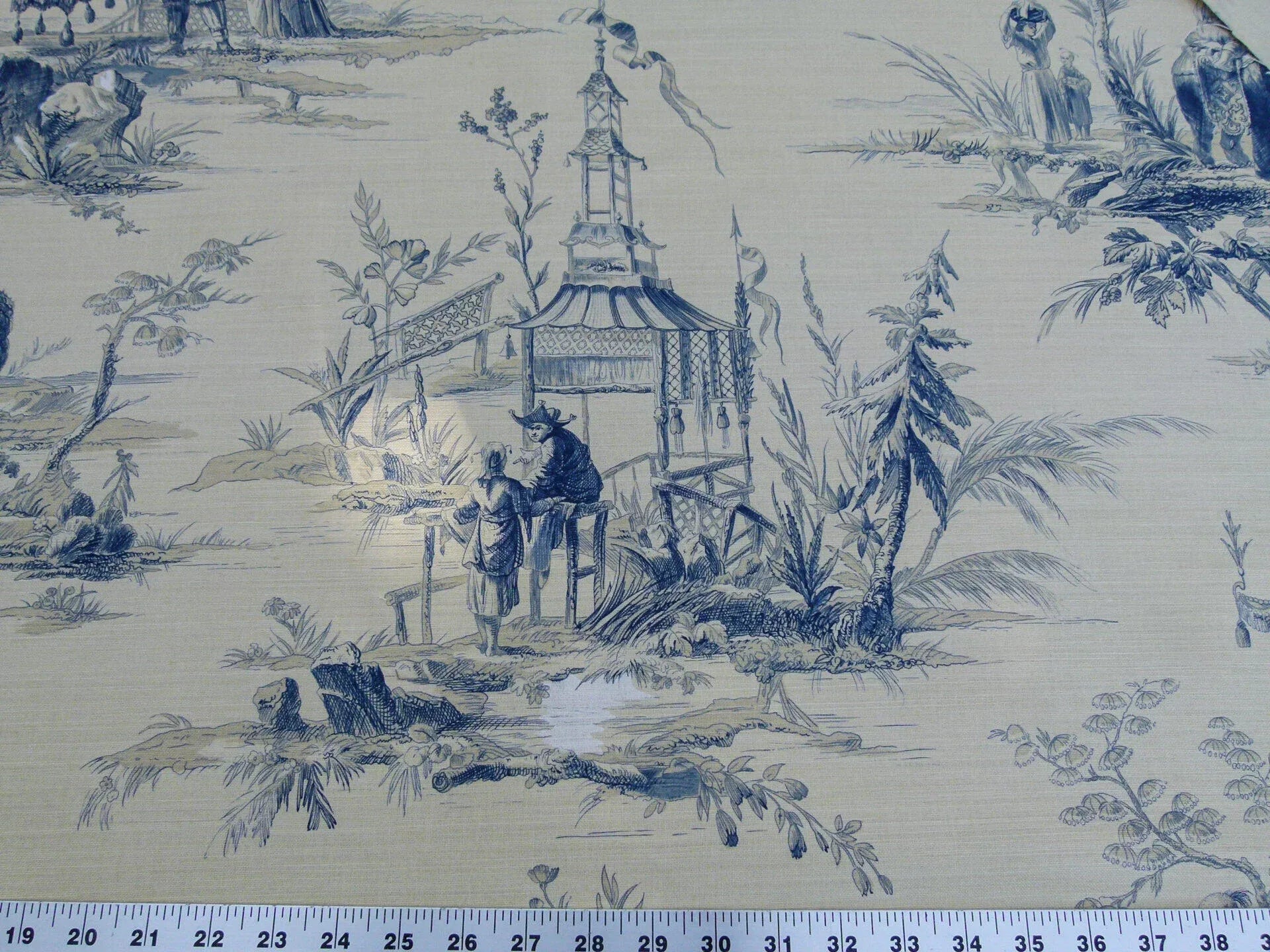 The charm of Old World charm of the copperplate. Copperplate was first engraved and then printed onto linen and cotton blend plain cloth. Old World Weavers revived this antique textile accurately.