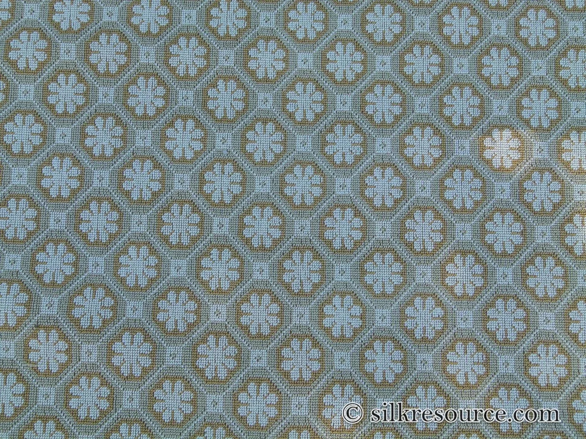 If this small flora pattern reminds you of kimono motif, that’s because it was during Tang Dynasty, thousands of Japanese scholars and artists were sent to study in Xi’an. This noble motif, a simplified version of peony, lotus and chrysanthemum wrapped into one blossom, representing the perfection of Buddhist enlightenment, was ubiquitous in Chang’an (Xi’an’s ancient name), on its ceilings, in lady’s makeup, in bricks, in lacquerware, in porcelain and certainly in textile.