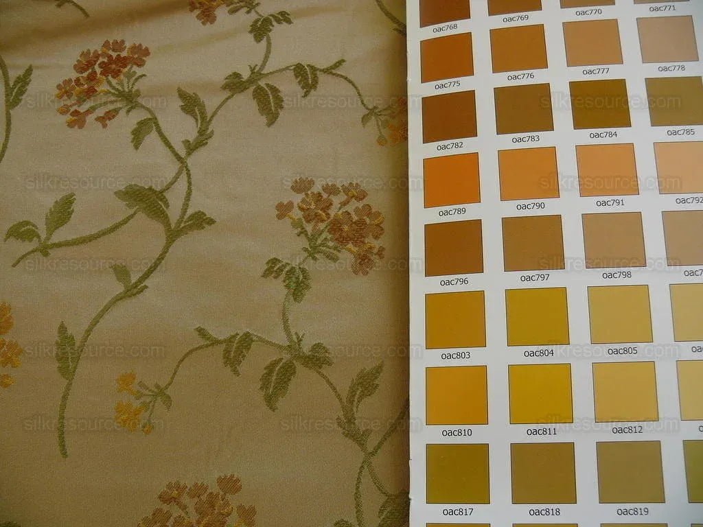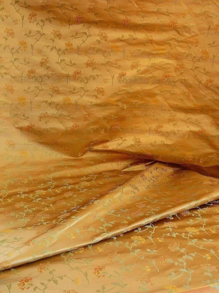 Schumacher 100% Silk Lampas Sage Blossom Sprig "spice" Gold