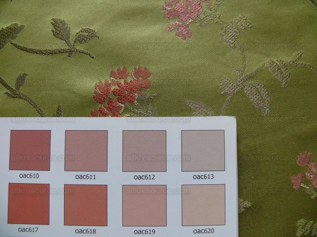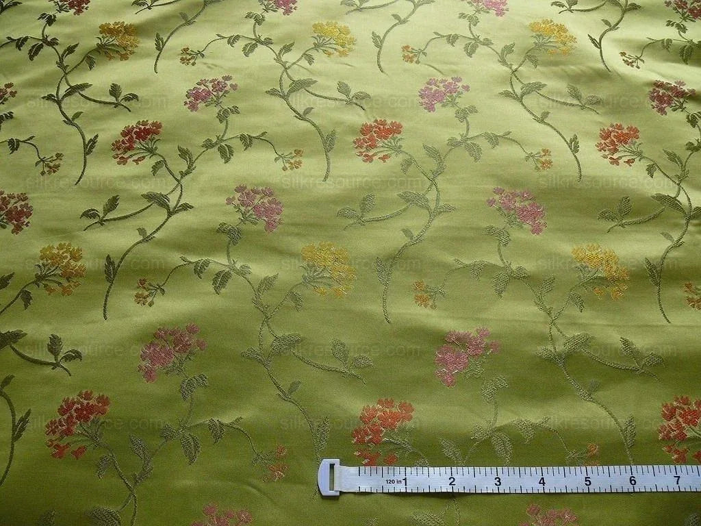 by yard 100% Silk Lampas Sage Blossom Sprig "stem" Green Pink Gold