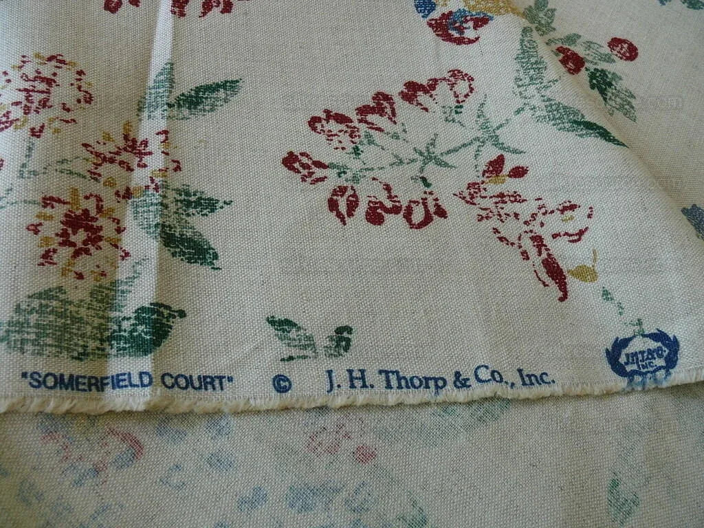 | Fabric color | background is unbleached natural. Prints in prime green, red & lighter blue. |