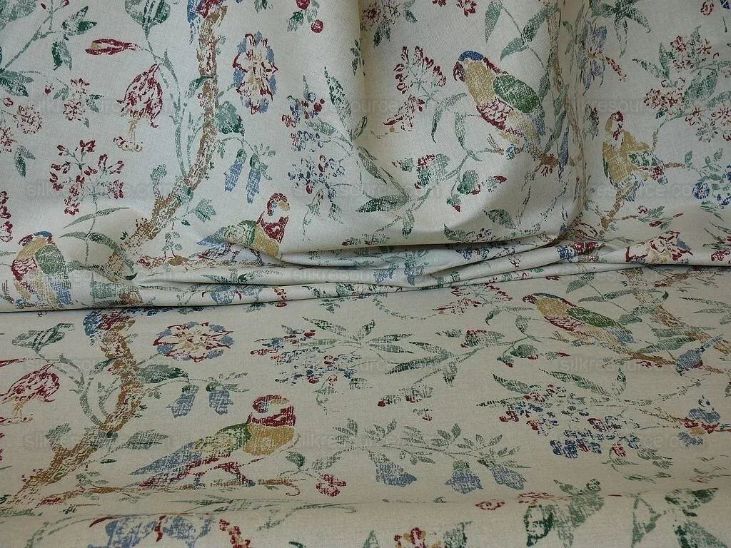 Schumacher Bird & Tree Of Life Resist Print Green Red On Natural