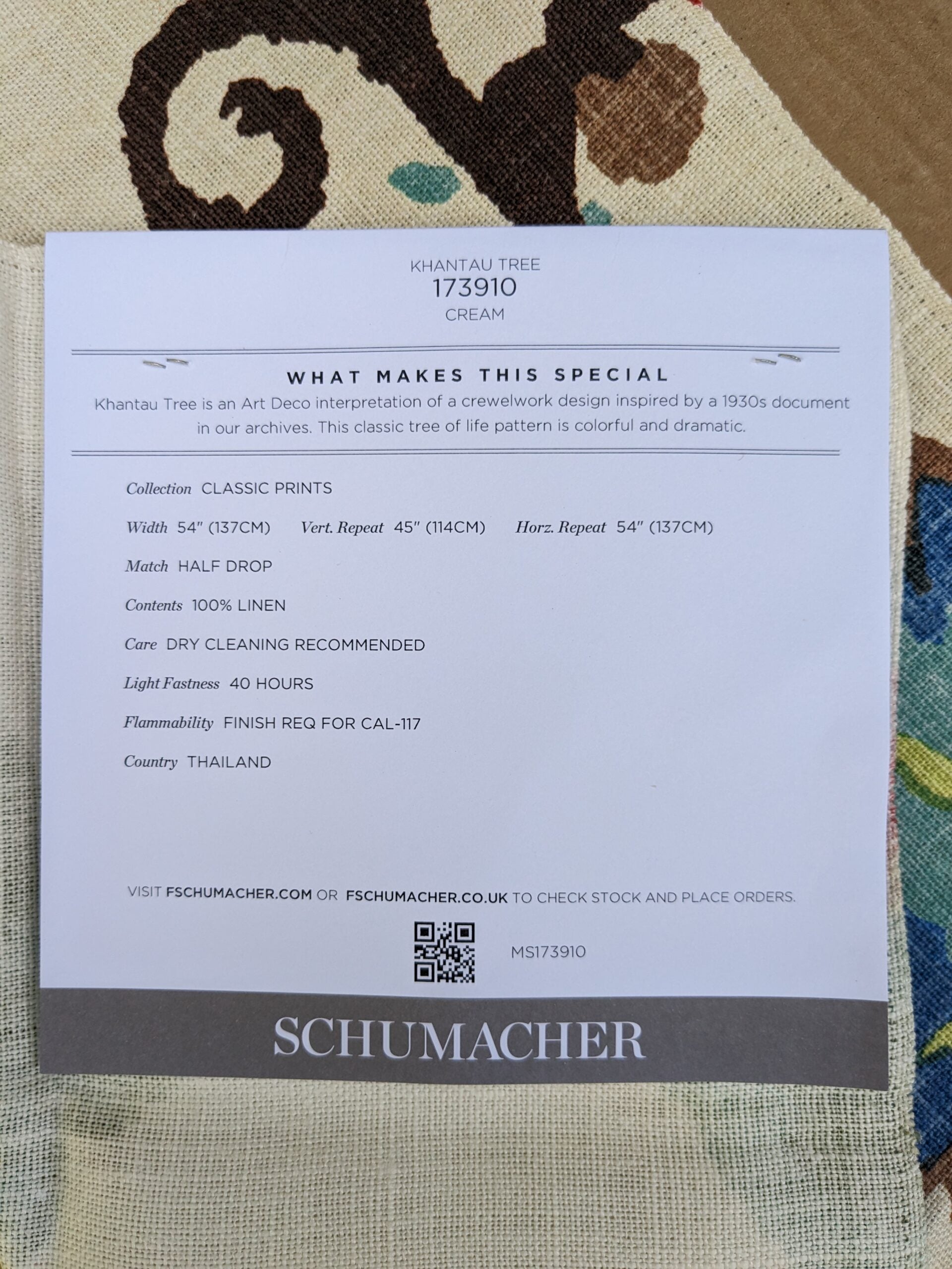 Schumacher Khantau Tree in Cream Linen Art Deco Tree of life Botanical Colorful MSRP USD356/y