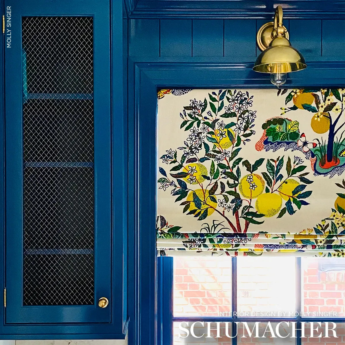 Schumacher Citrus Garden in Primary Trees Toile Linen Fabric Primary Multi MSRP396/Y