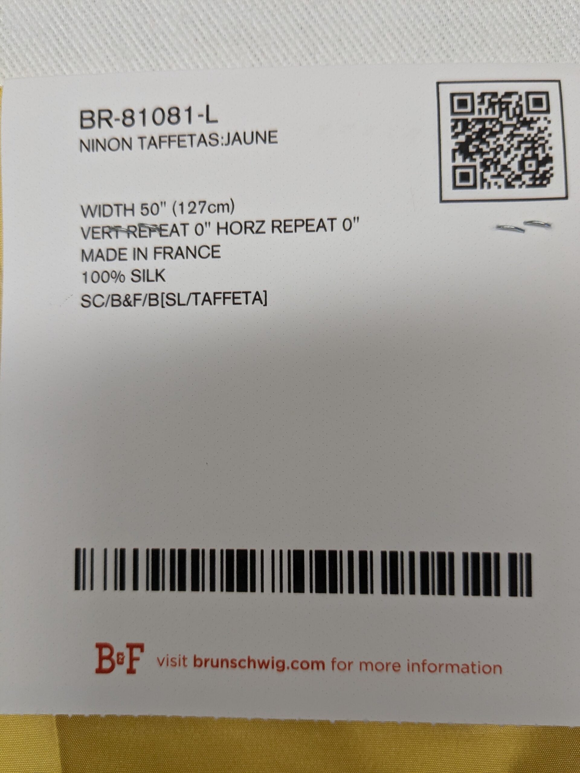 Special Order Brunschwig & Fils Ninon Taffetas - Jaune Yellow Silk Solid Plain MSRP USD 718/y