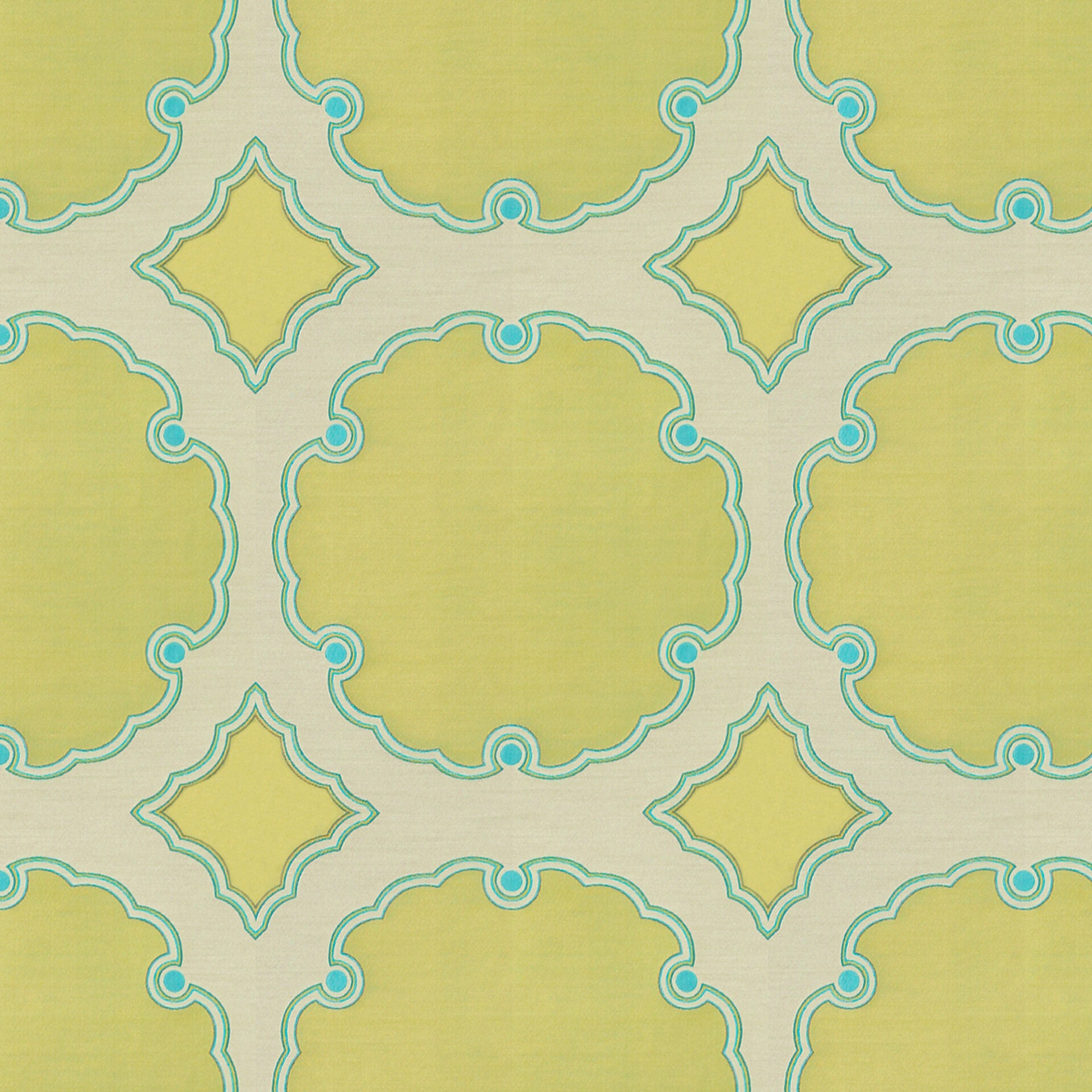 Special Order Kravet Couture Interpretation - Citron Teal Yellow Silk Jacquard Medallion MSRP USD 348/y