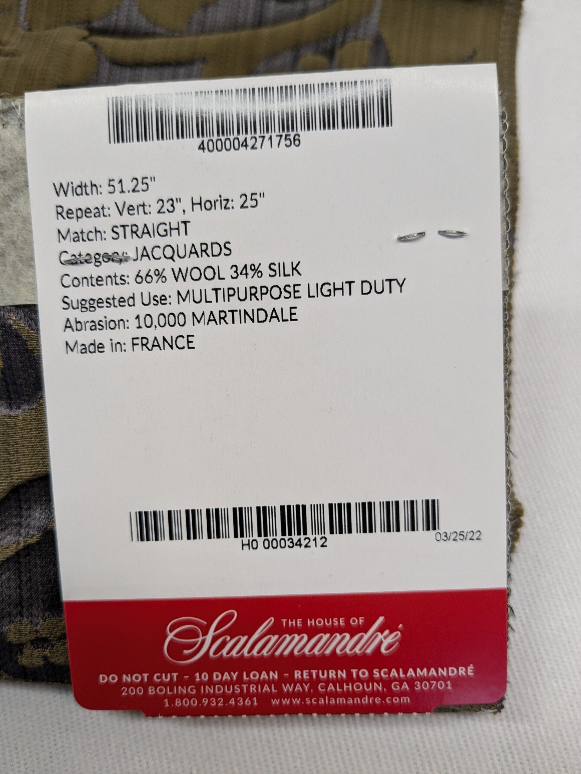 Special Order Scalamandre Lelievre Paris Athenais Etain Gray Silk Wool Damask MSRP USD1082/y